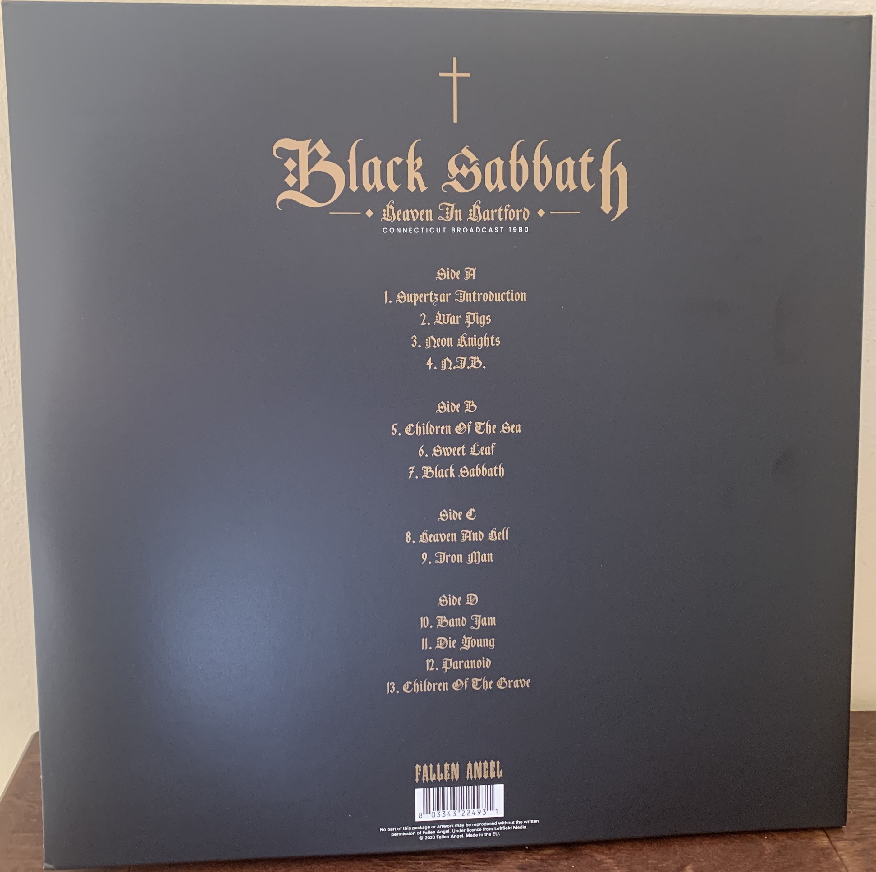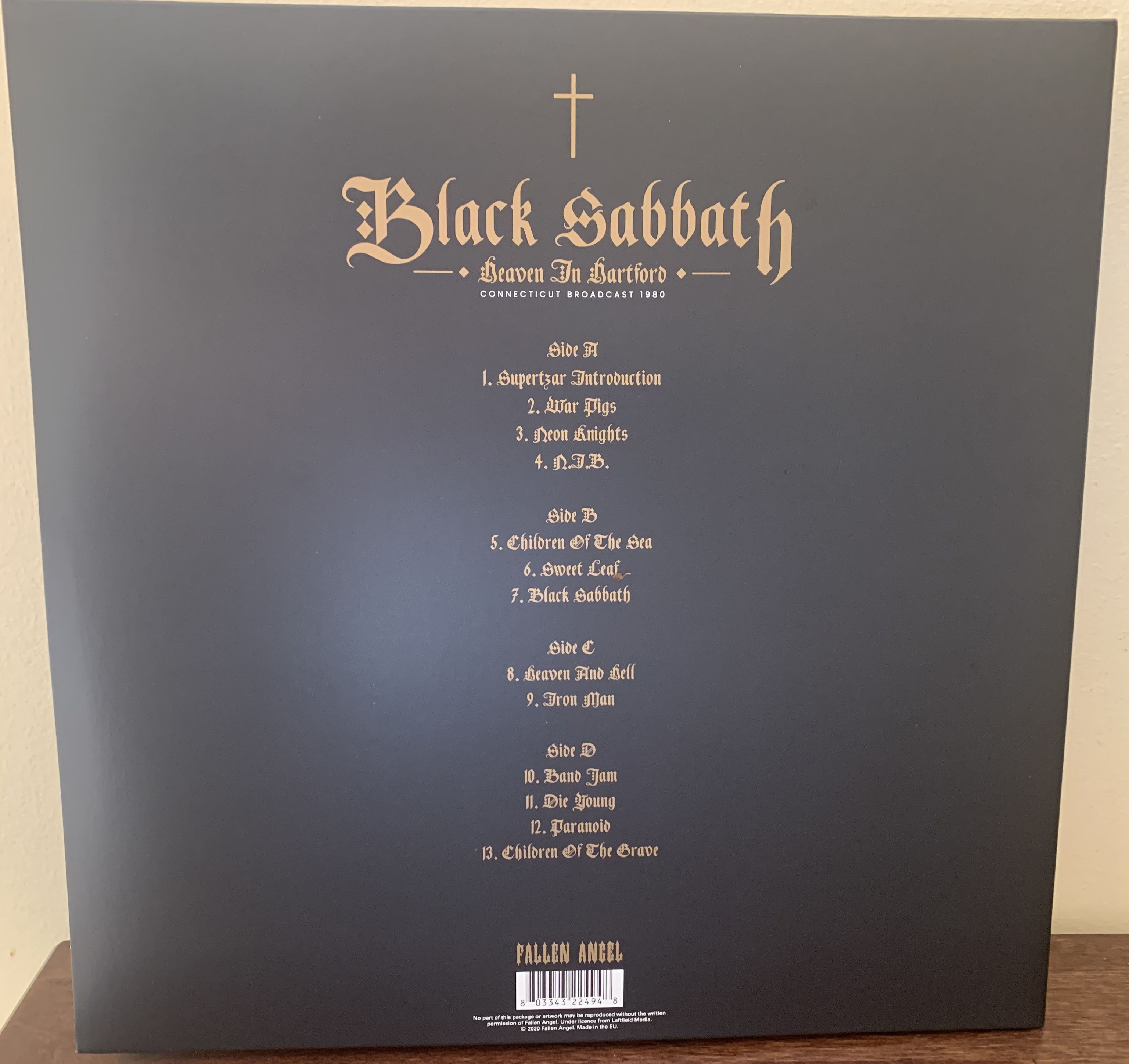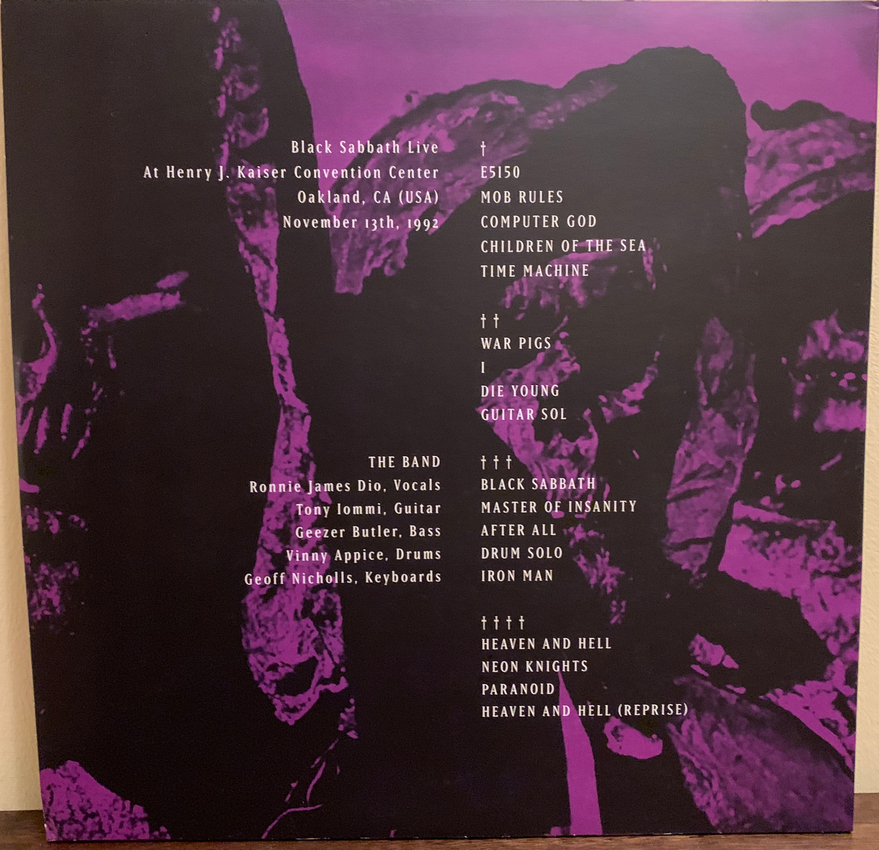 - Black Sabbath cross logo on the front, band picture on the back