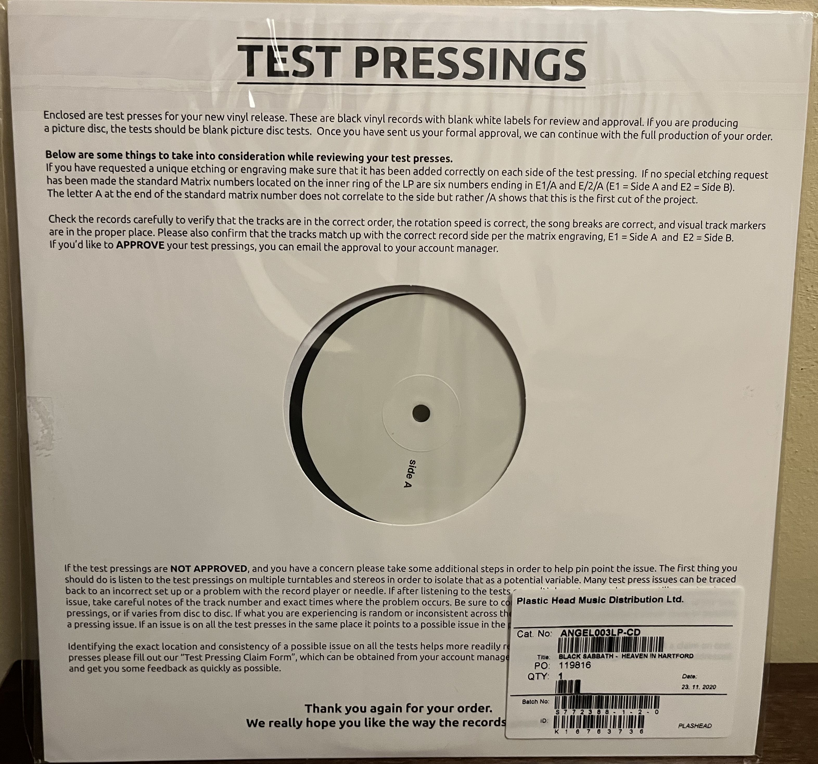 (handwriting) on the run-off area of the vinyls
