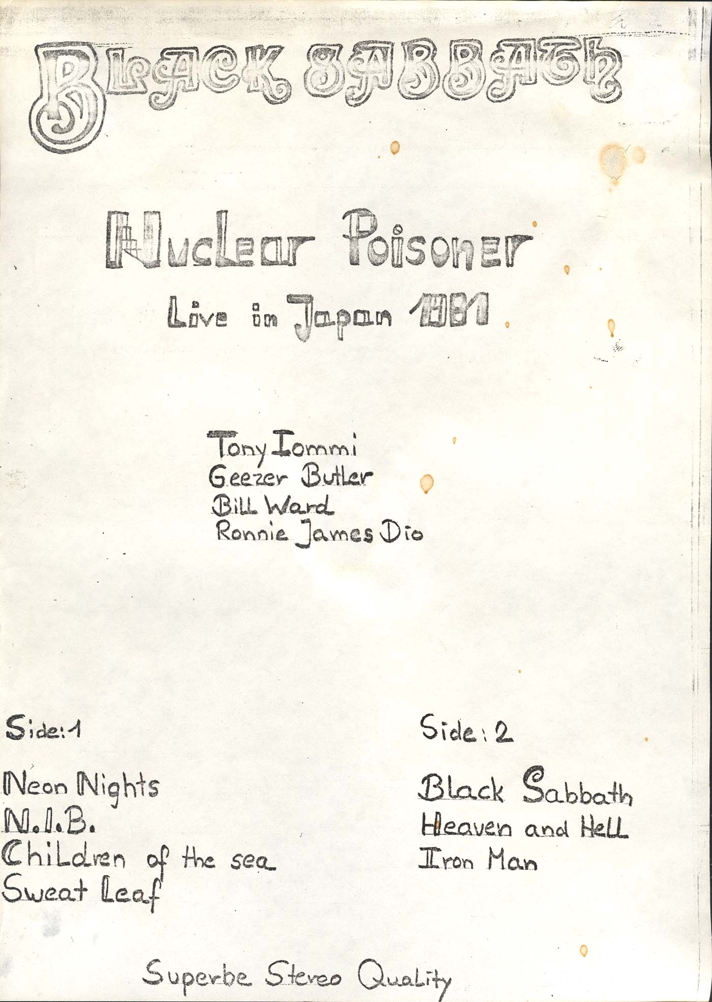 - Some sources call this bootleg as "Black Sabbath"