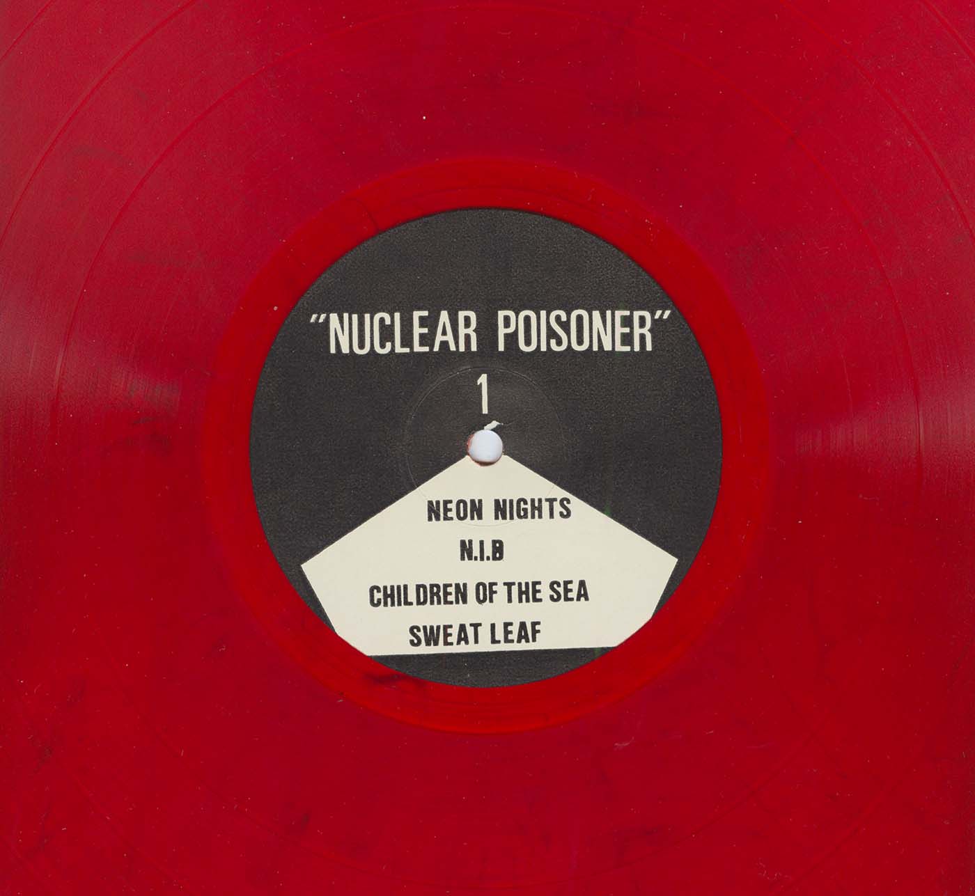 - Red vinyl (translucent red with some black specks in the vinyl)