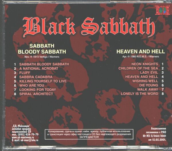 These are illegal, unauthorized copies of Black Sabbath / Black Sabbath releated CDs.