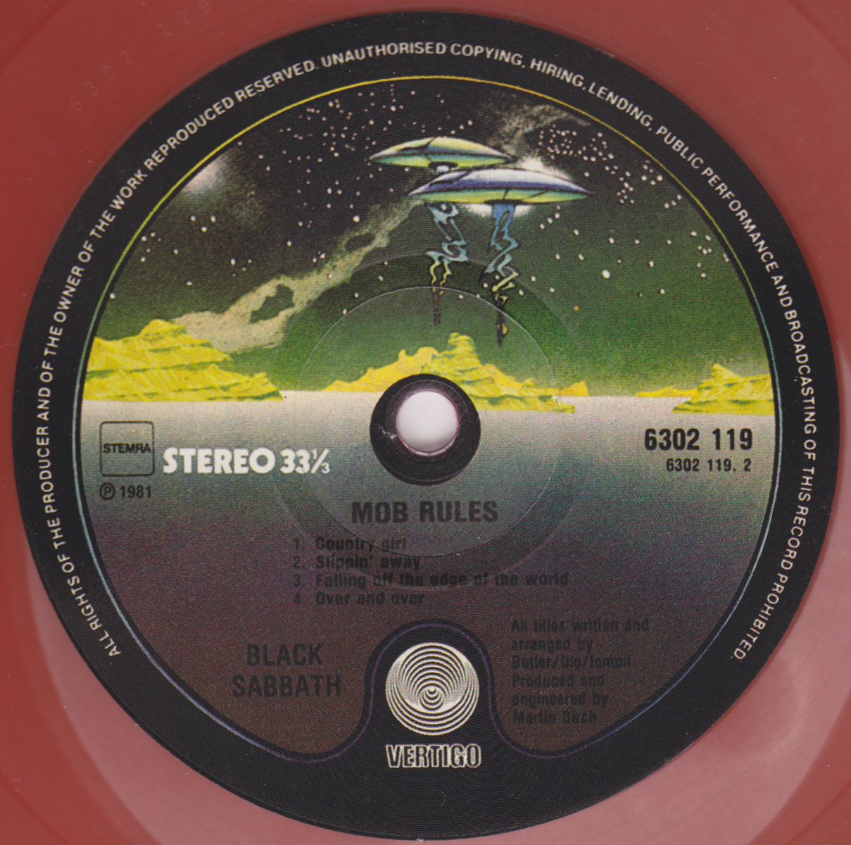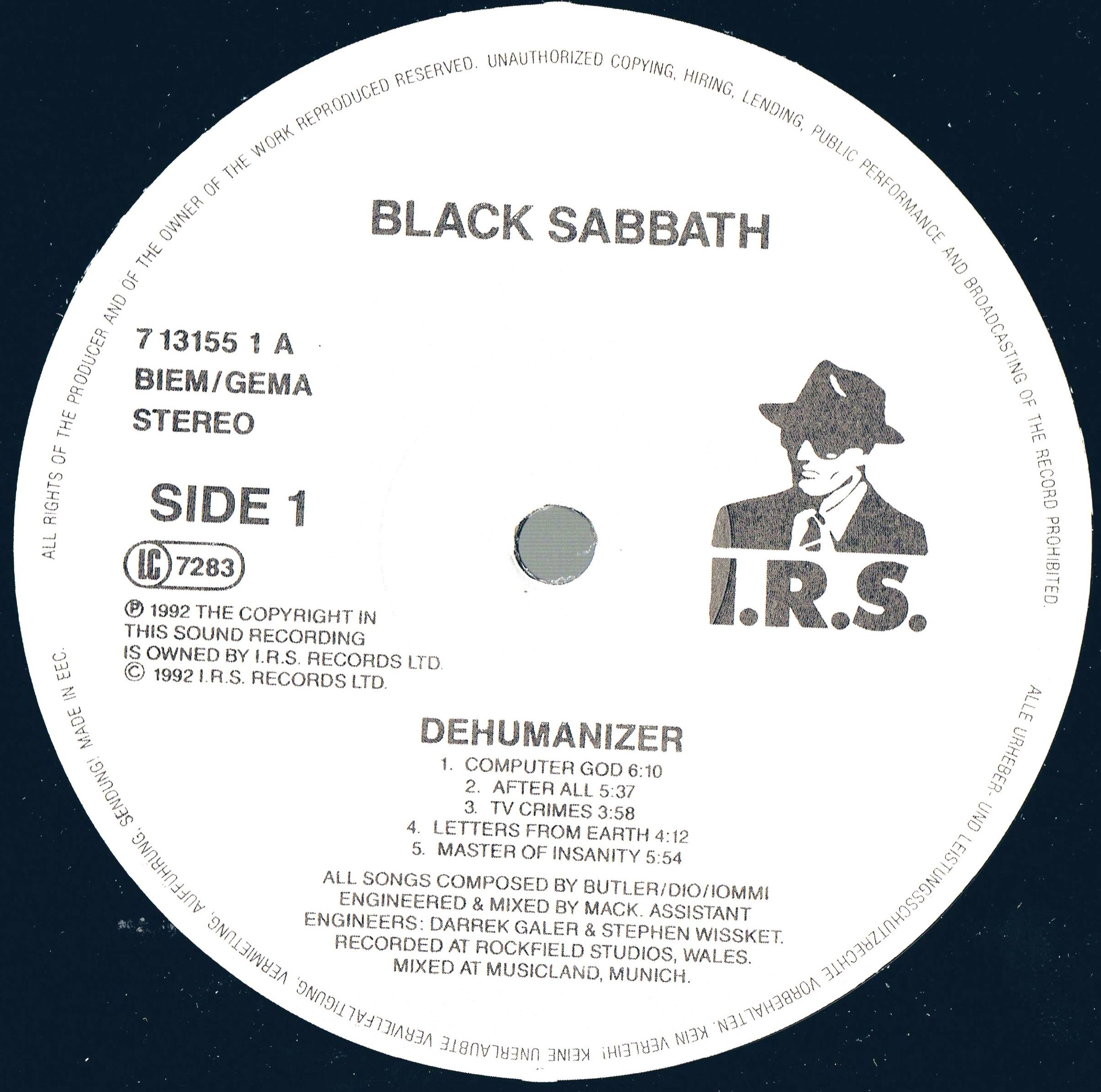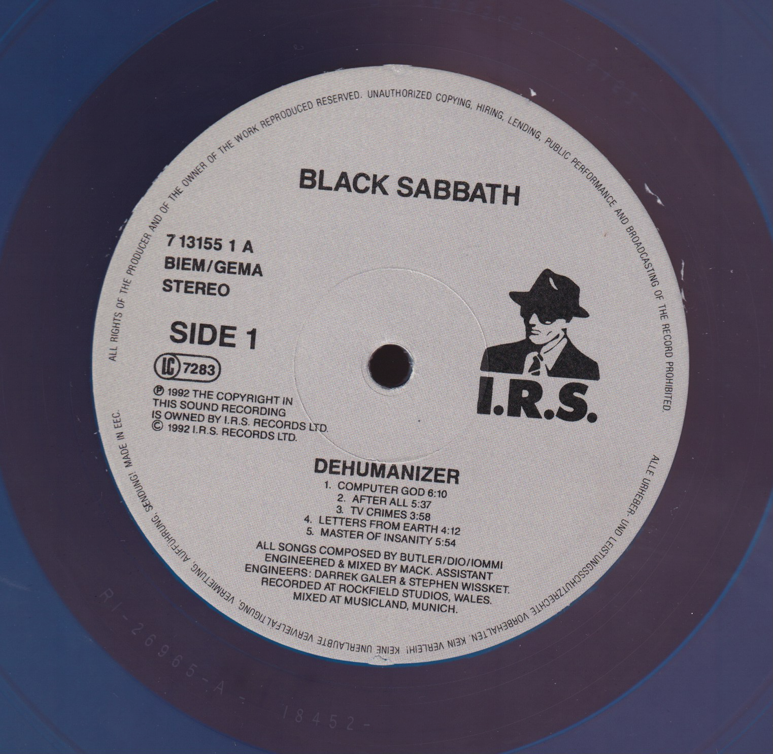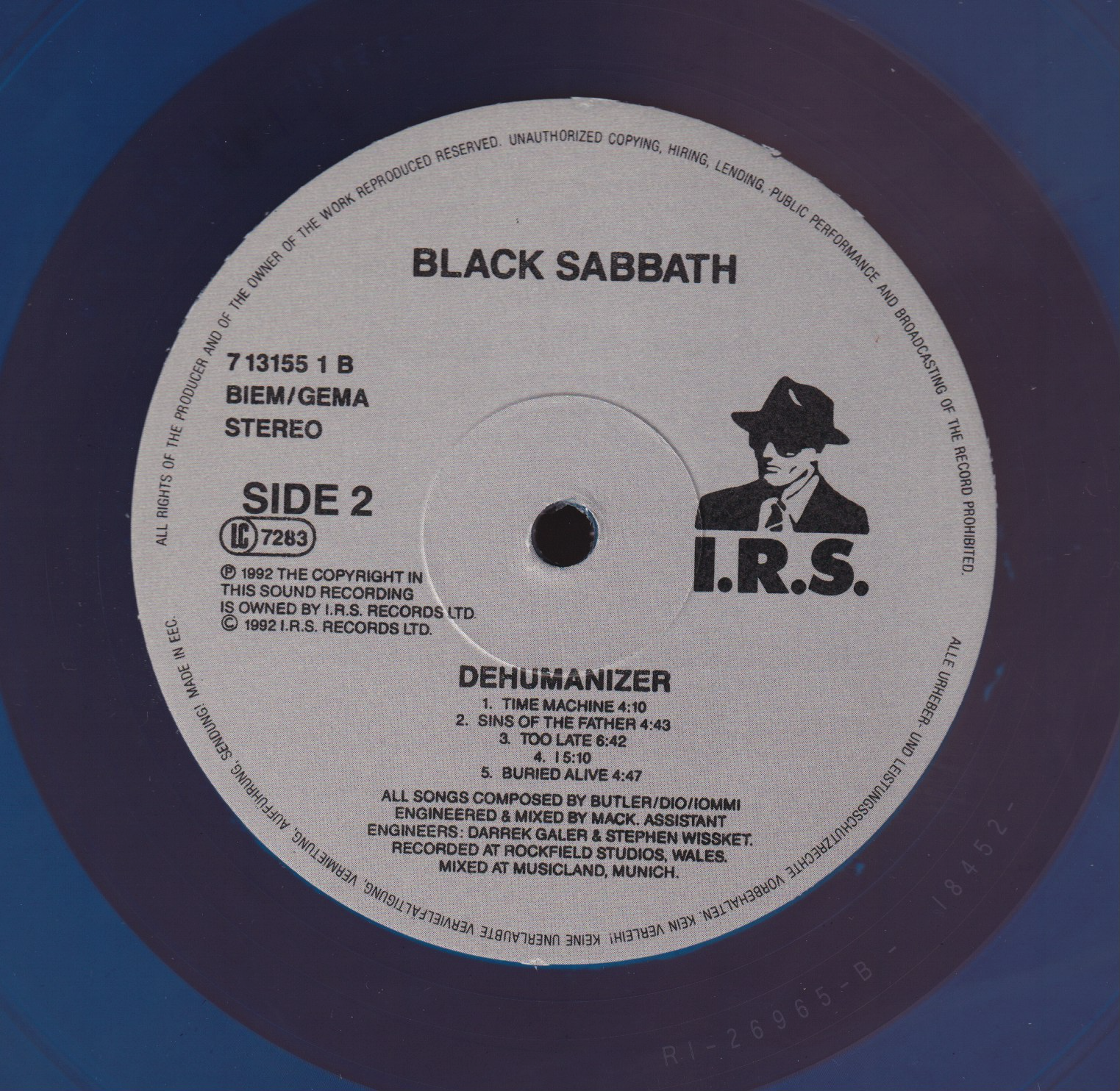 - Counterfeit release, European I.R.S catalog number on the sleeve, US catalog number stamped on vinyl