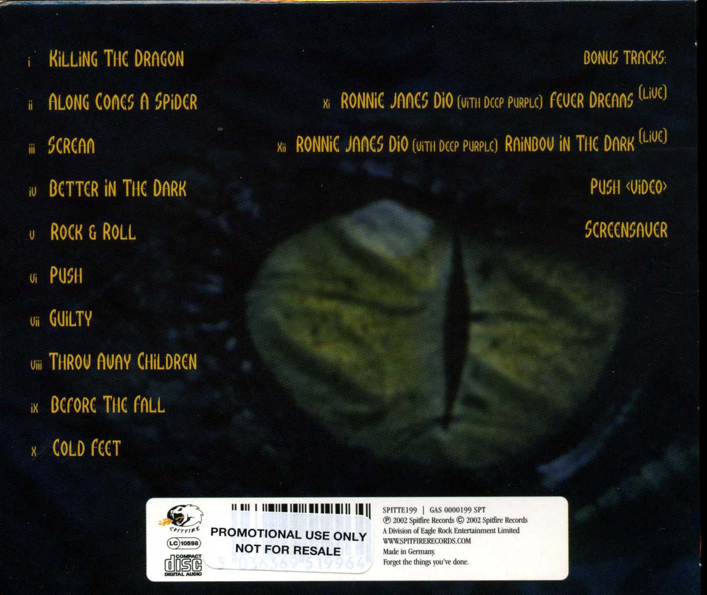 - Spitfire Records SPITCD199, Germany, May 20th 2002
