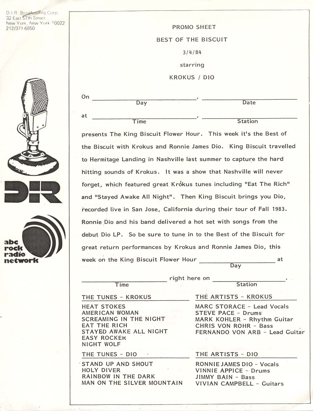 The Best Of The Biscuit 3/4/84 starring Krokus / Dio
