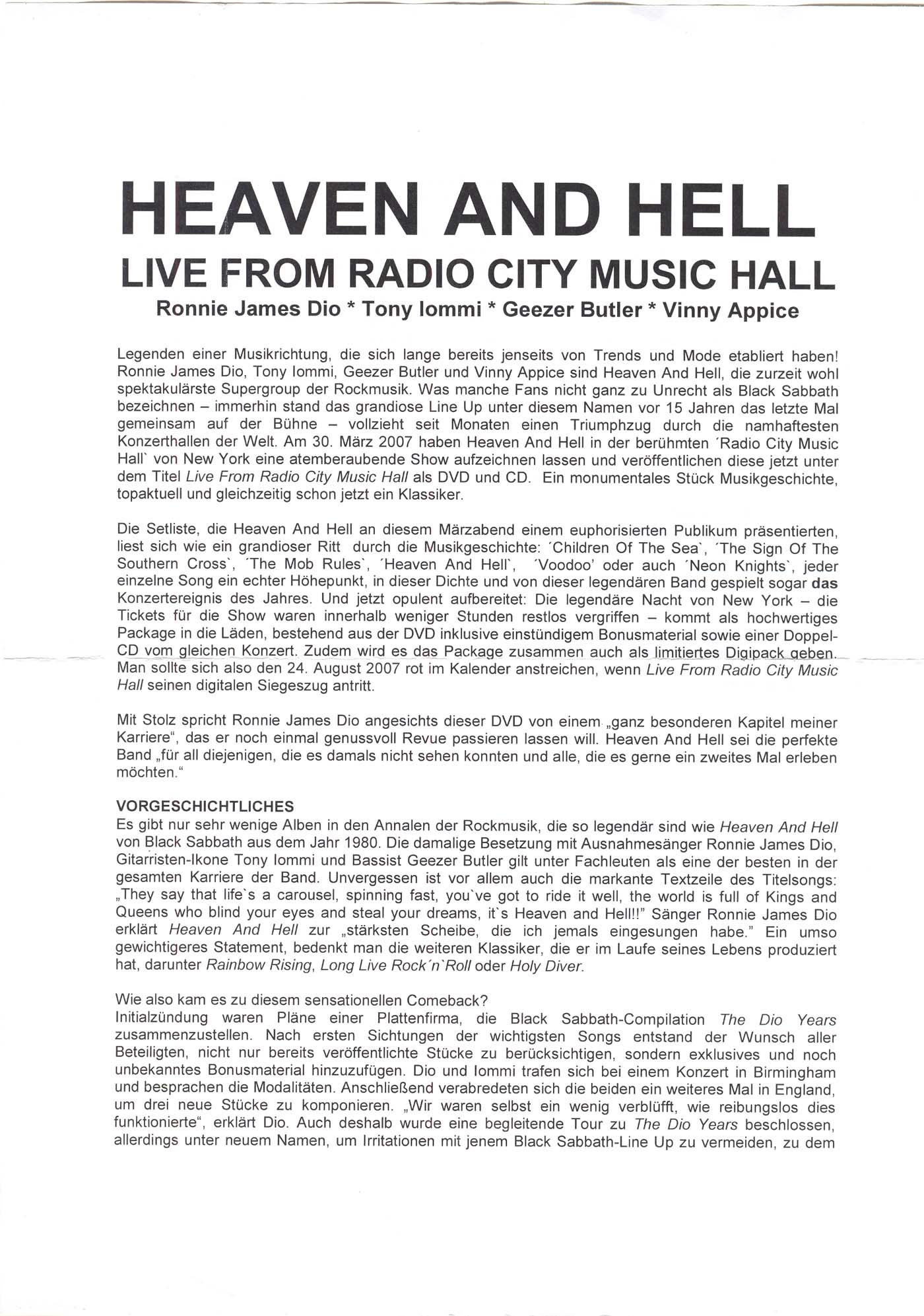 - Bonus: Ronnie James Dio Tribute: Tony Iommi, Vinny Appice, Geezer Butler