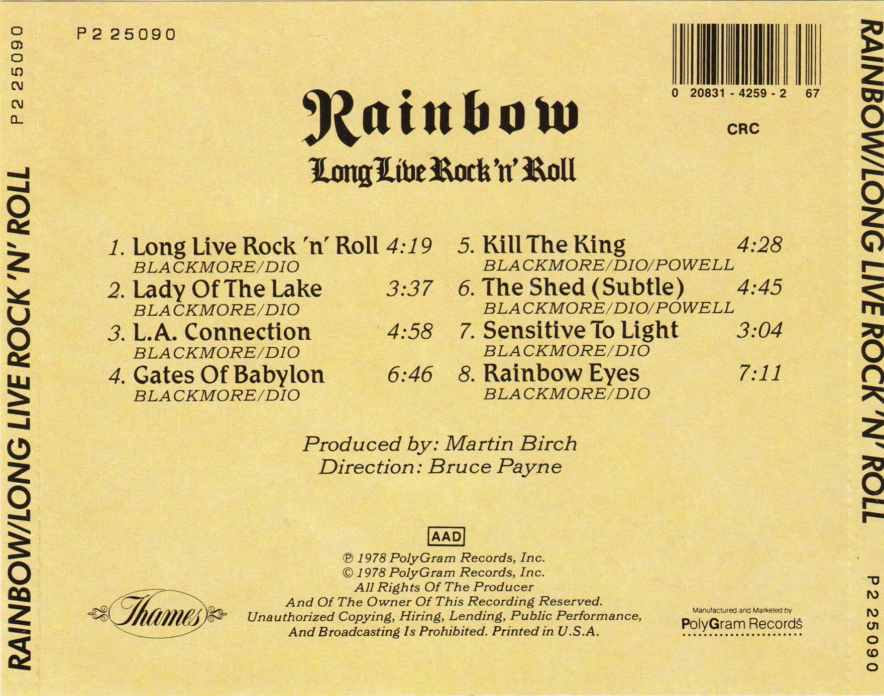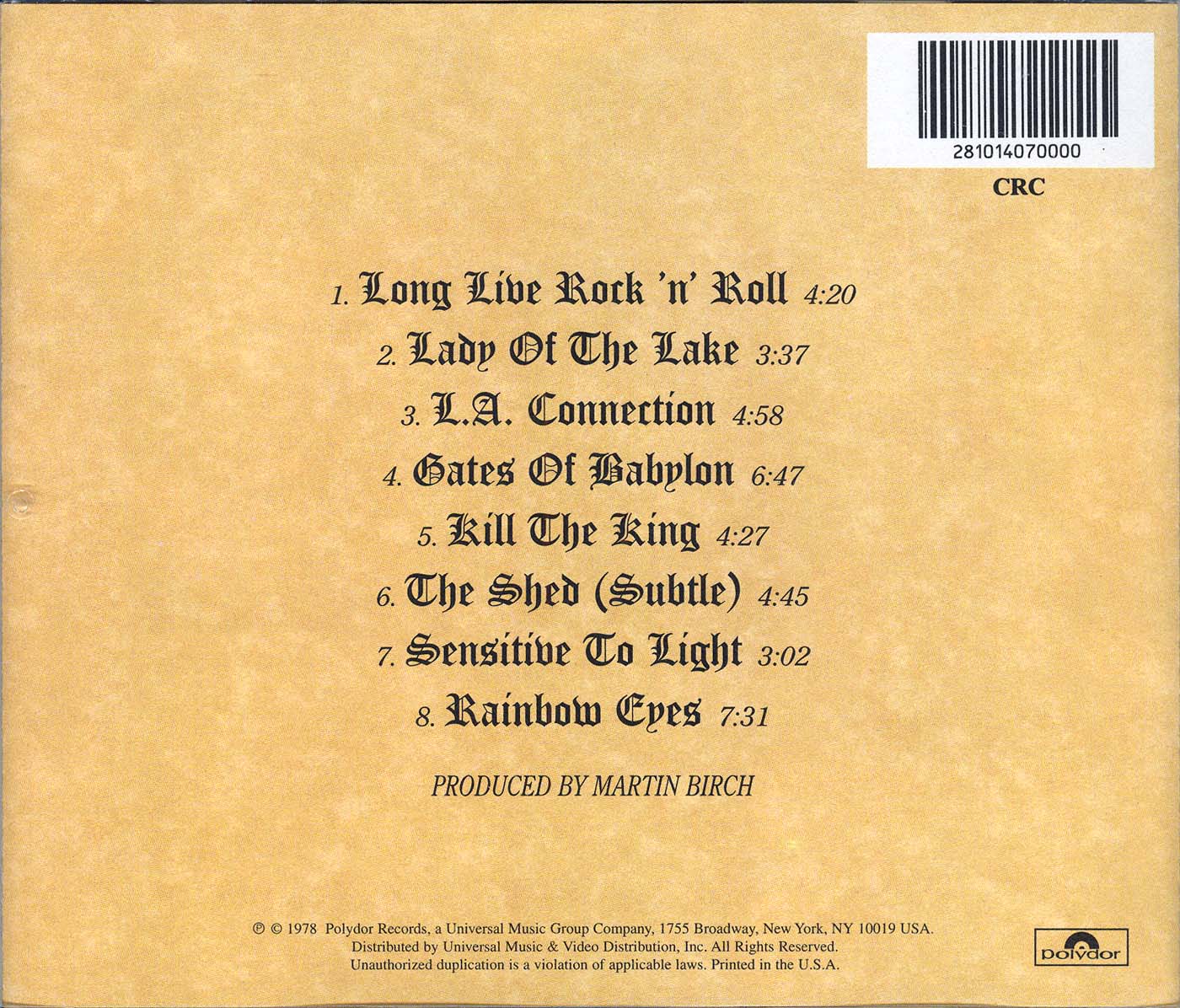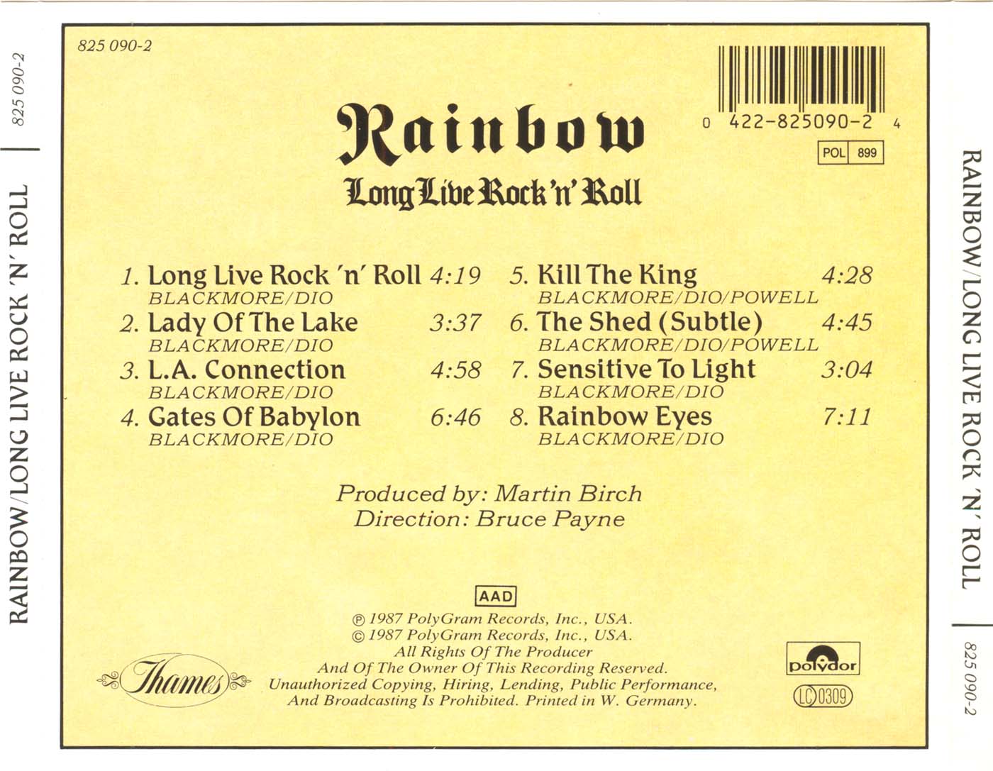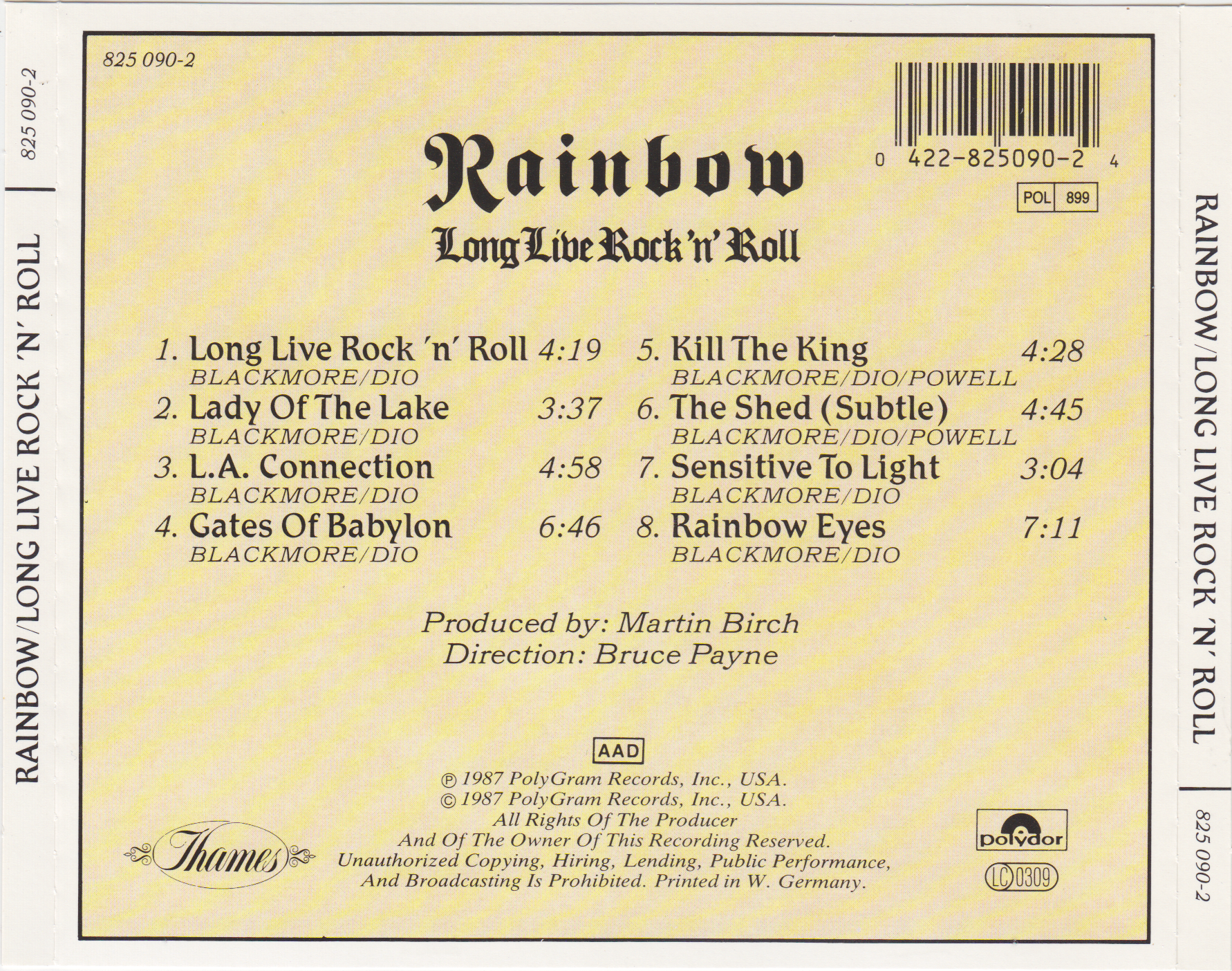 - "Made in W.-Germany by PolyGram" printed on CD