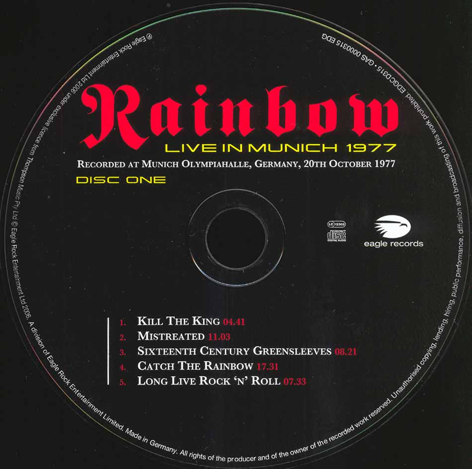 - Eagle Rock Entertainment EDGCD315, Germany, June 13th, 2006
