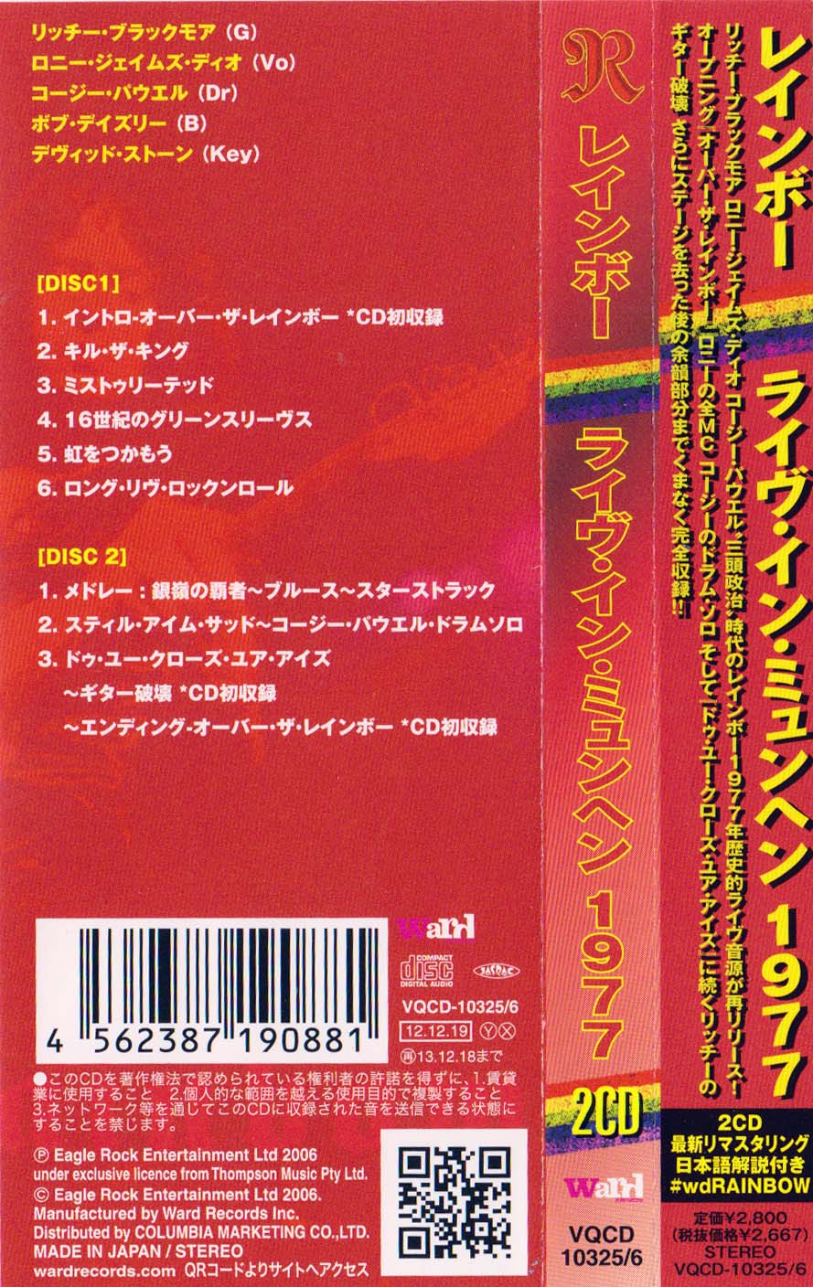 - Ward Records/Eagle Rock Entertainment VQCD-10325/6, Japan, 2012-12-19