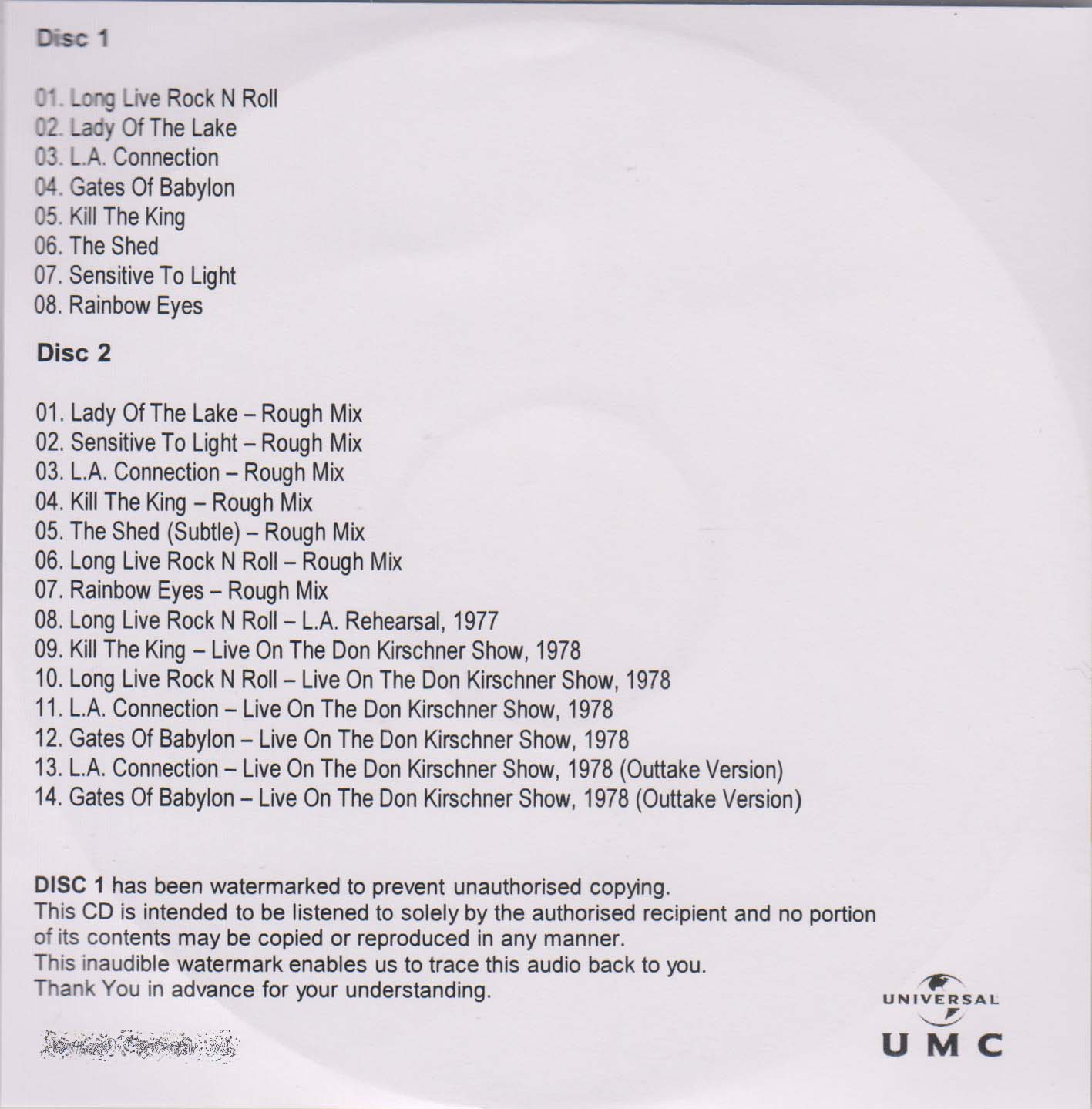 - "Made in U.K." printed on CD