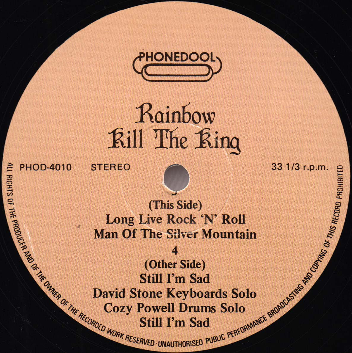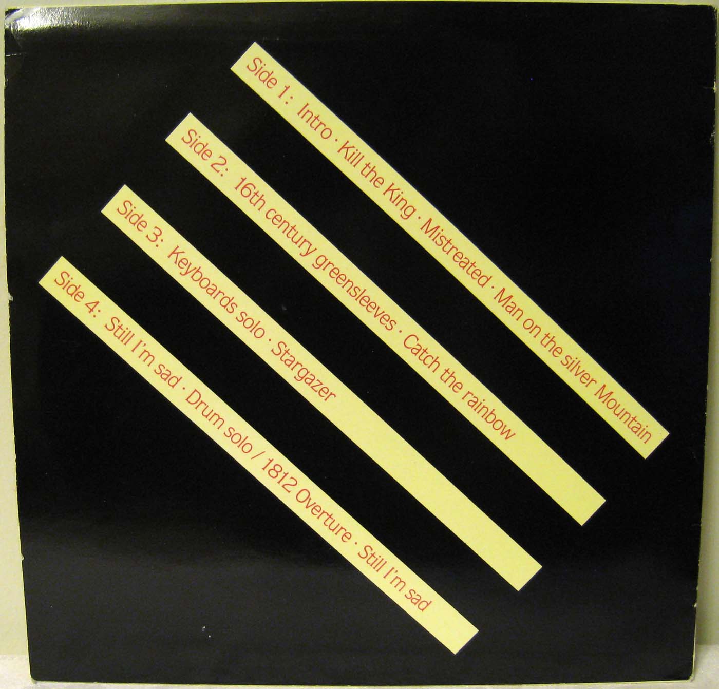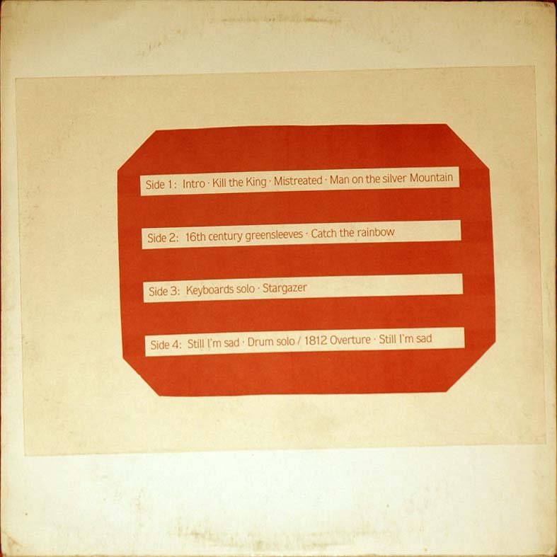 Recorded live at Olympiahalle, Munich, Germany on October 20th, 1977, except (*) recorded by Cozy Powell solo and (**) recorded live at Budokan, Tokyo, Japan on December 6th, 1976. Although Gates Of Babylon is listed on the sleeve, it is not on the vinyl. |