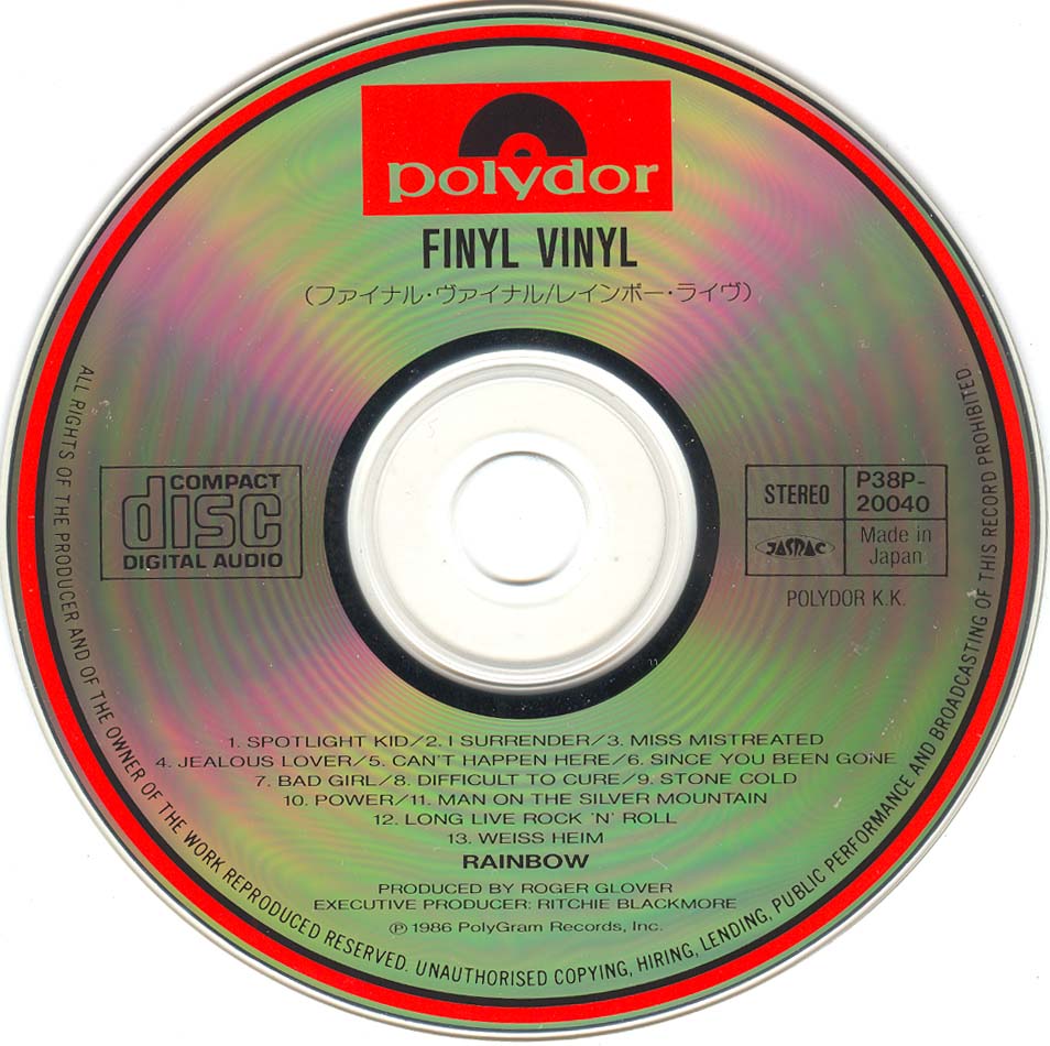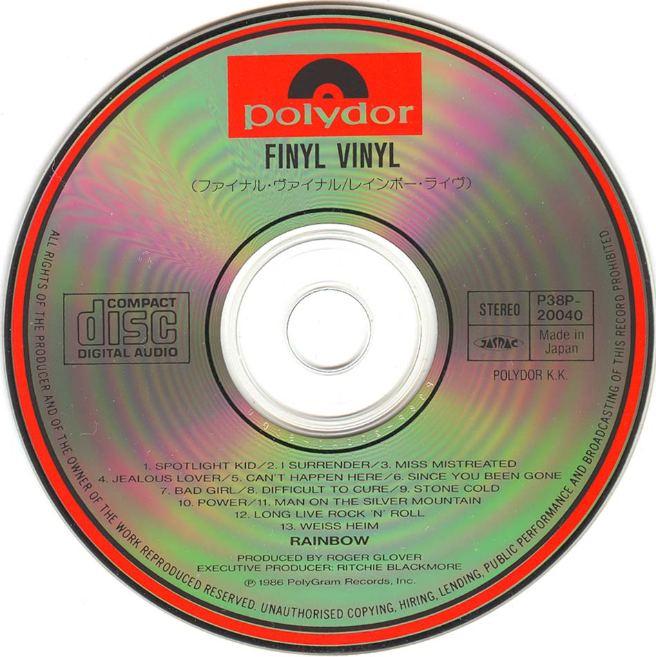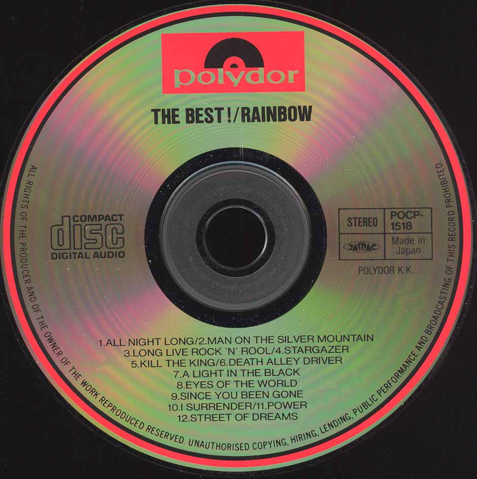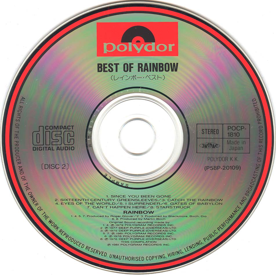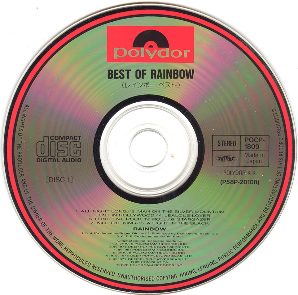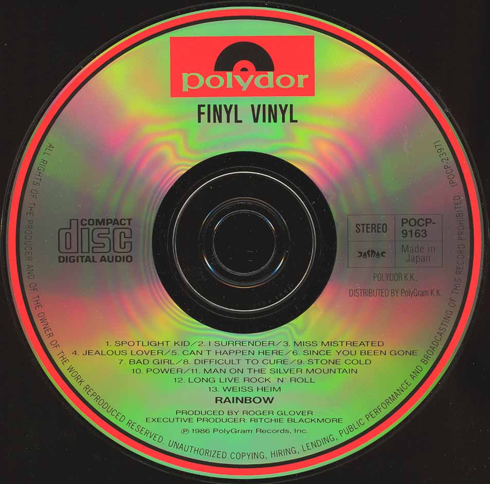 - Original, most likely the 1st Rainbow CD release ever