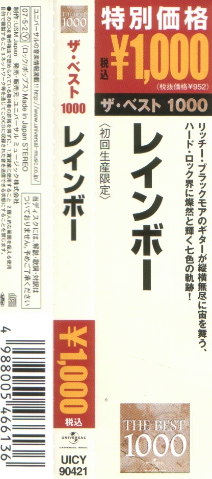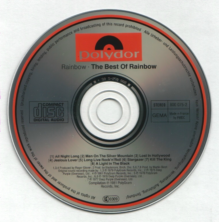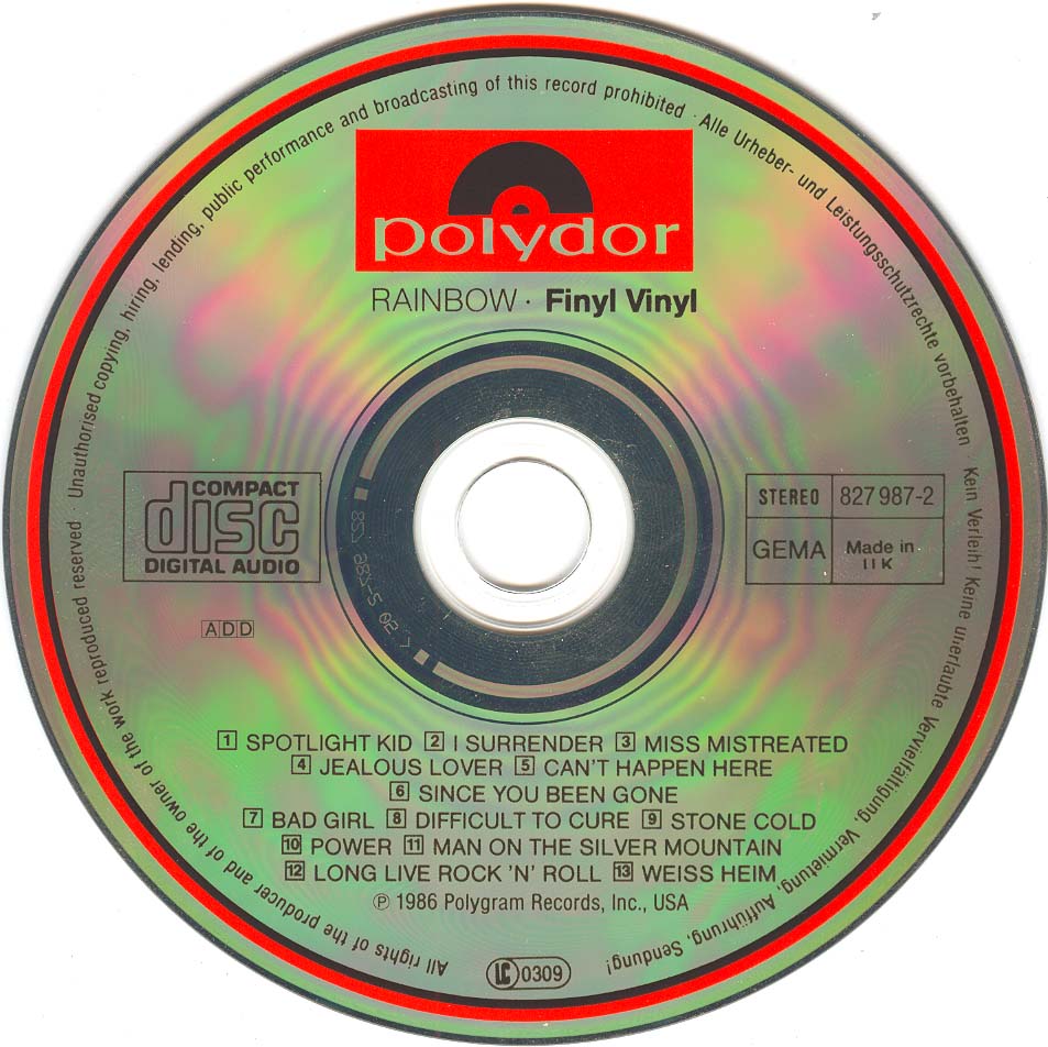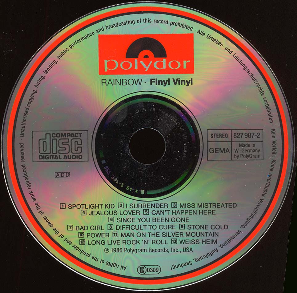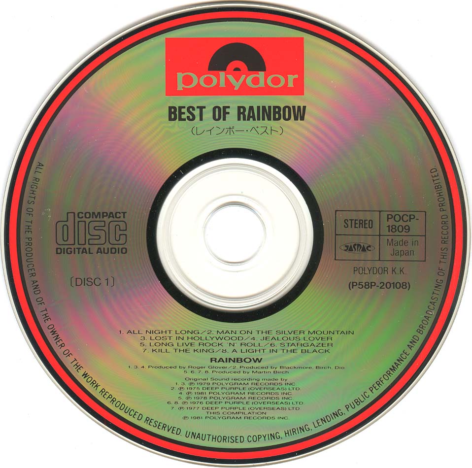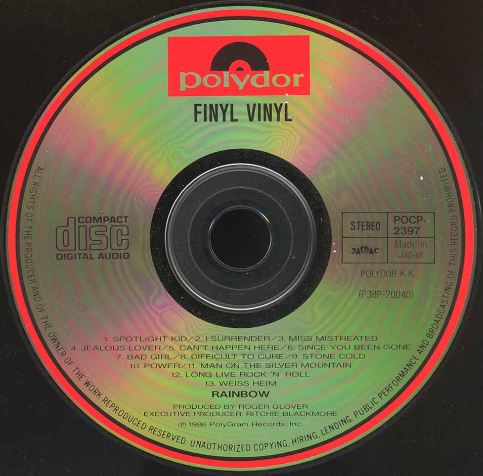 - Original, most likely the 1st Rainbow CD release ever