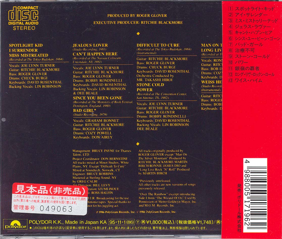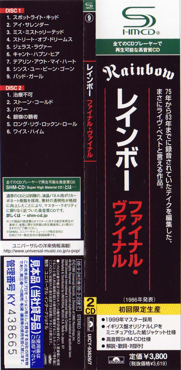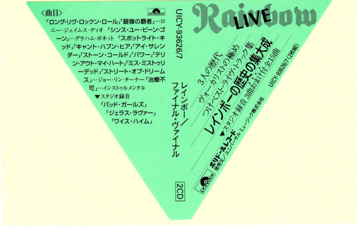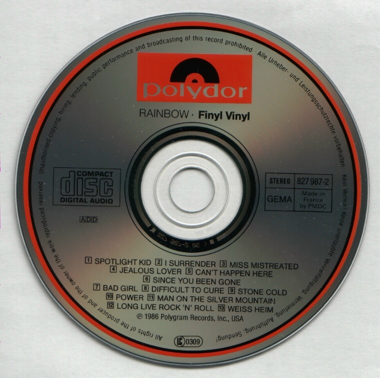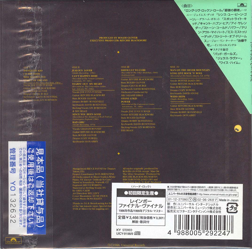 - Original, most likely the 1st Rainbow CD release ever