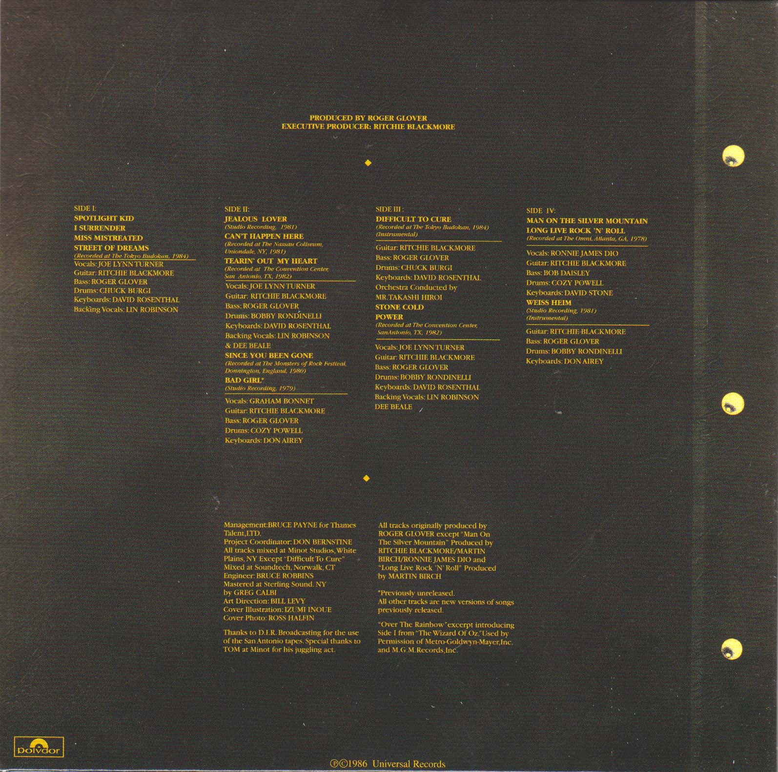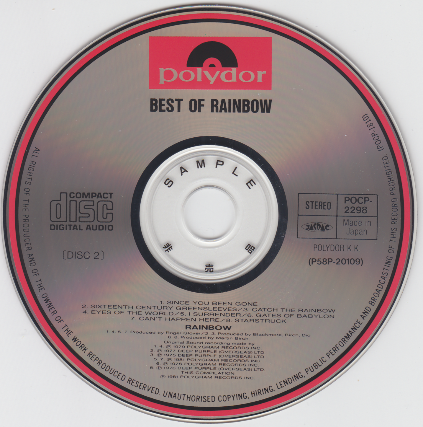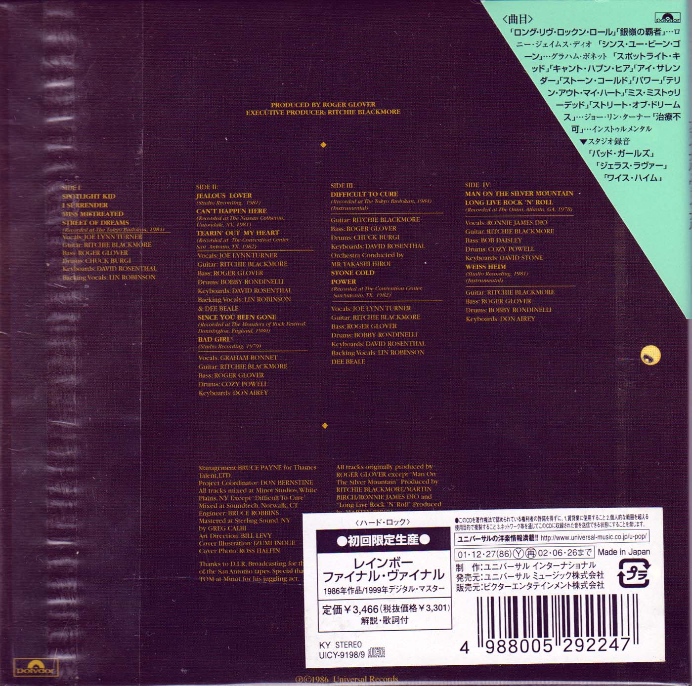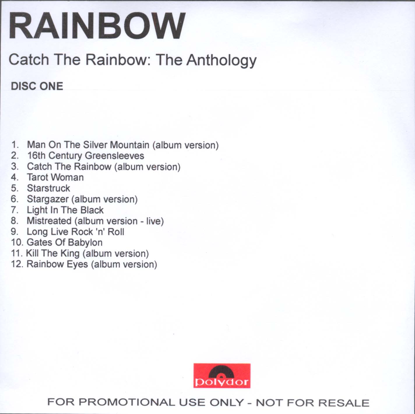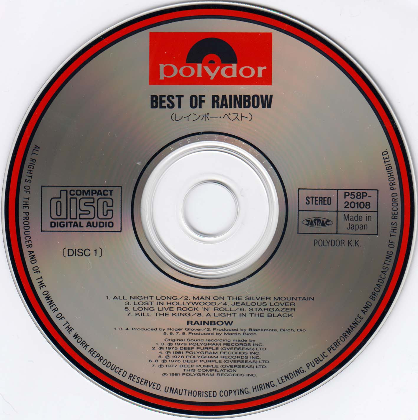 - Original, most likely the 1st Rainbow CD release ever