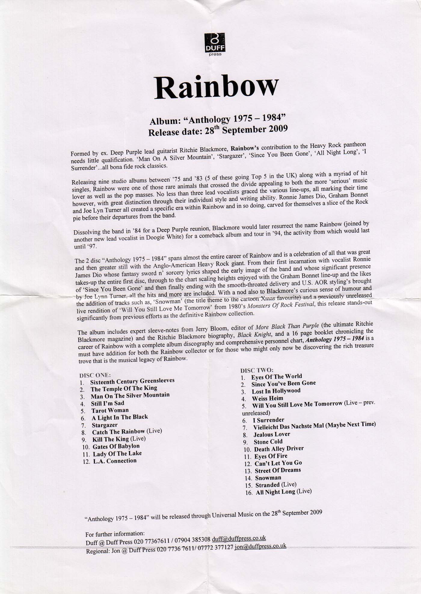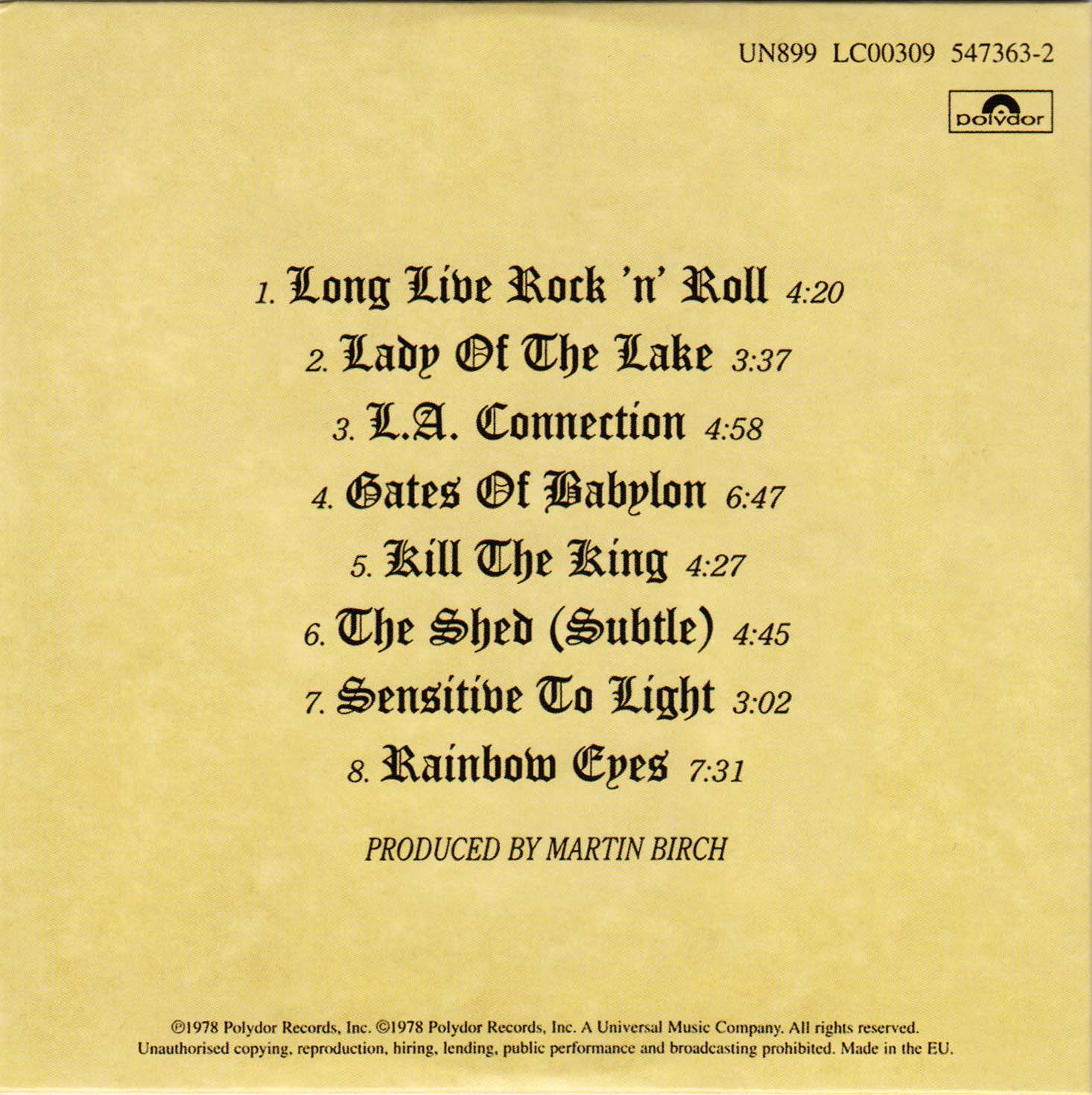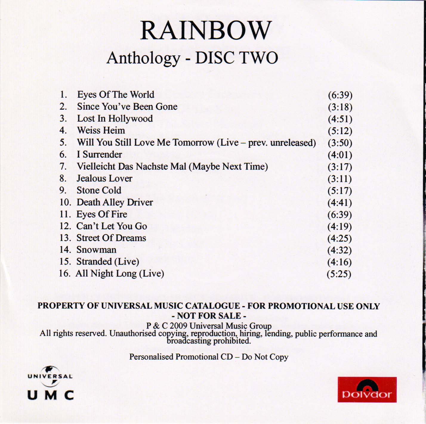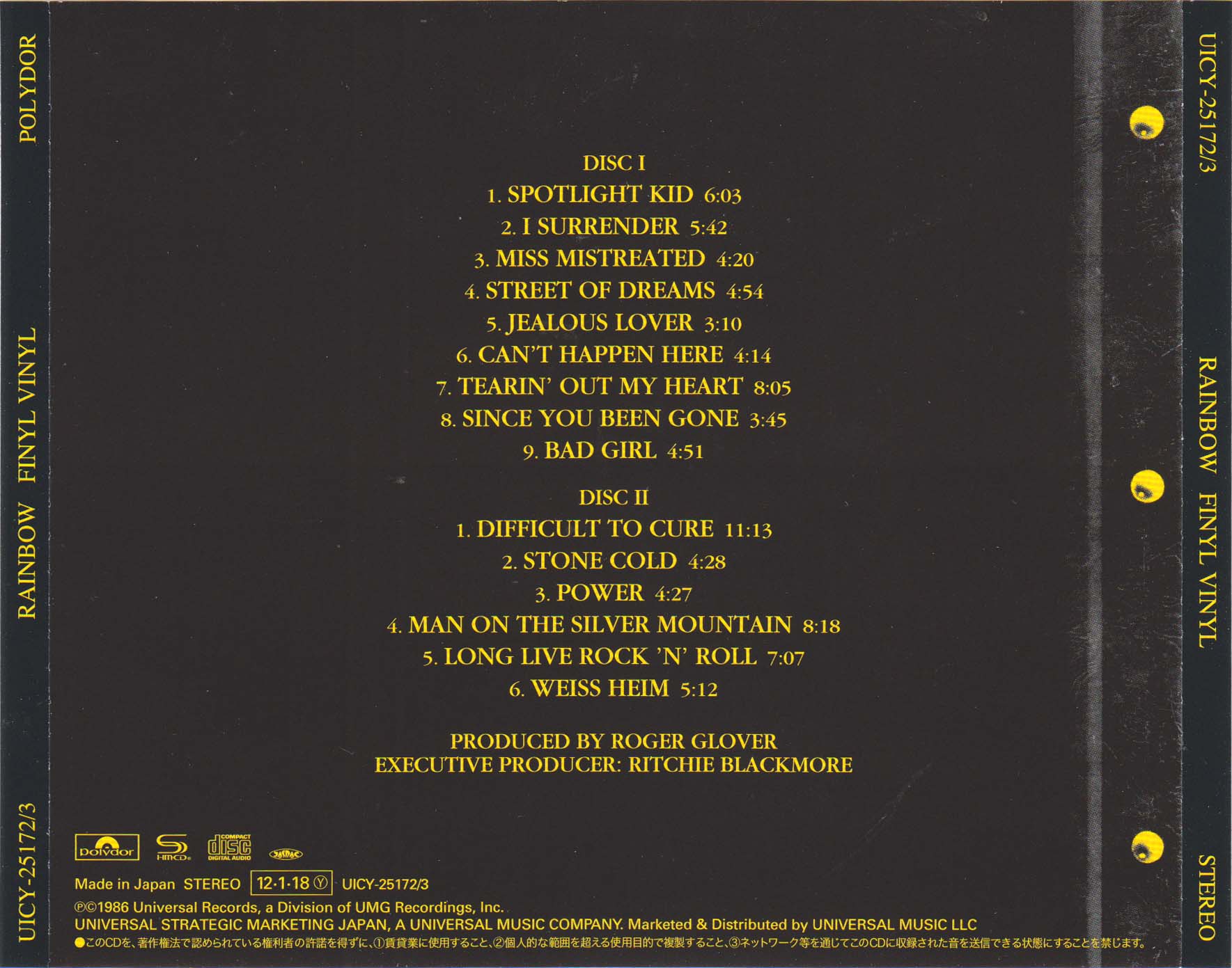 - Original, most likely the 1st Rainbow CD release ever