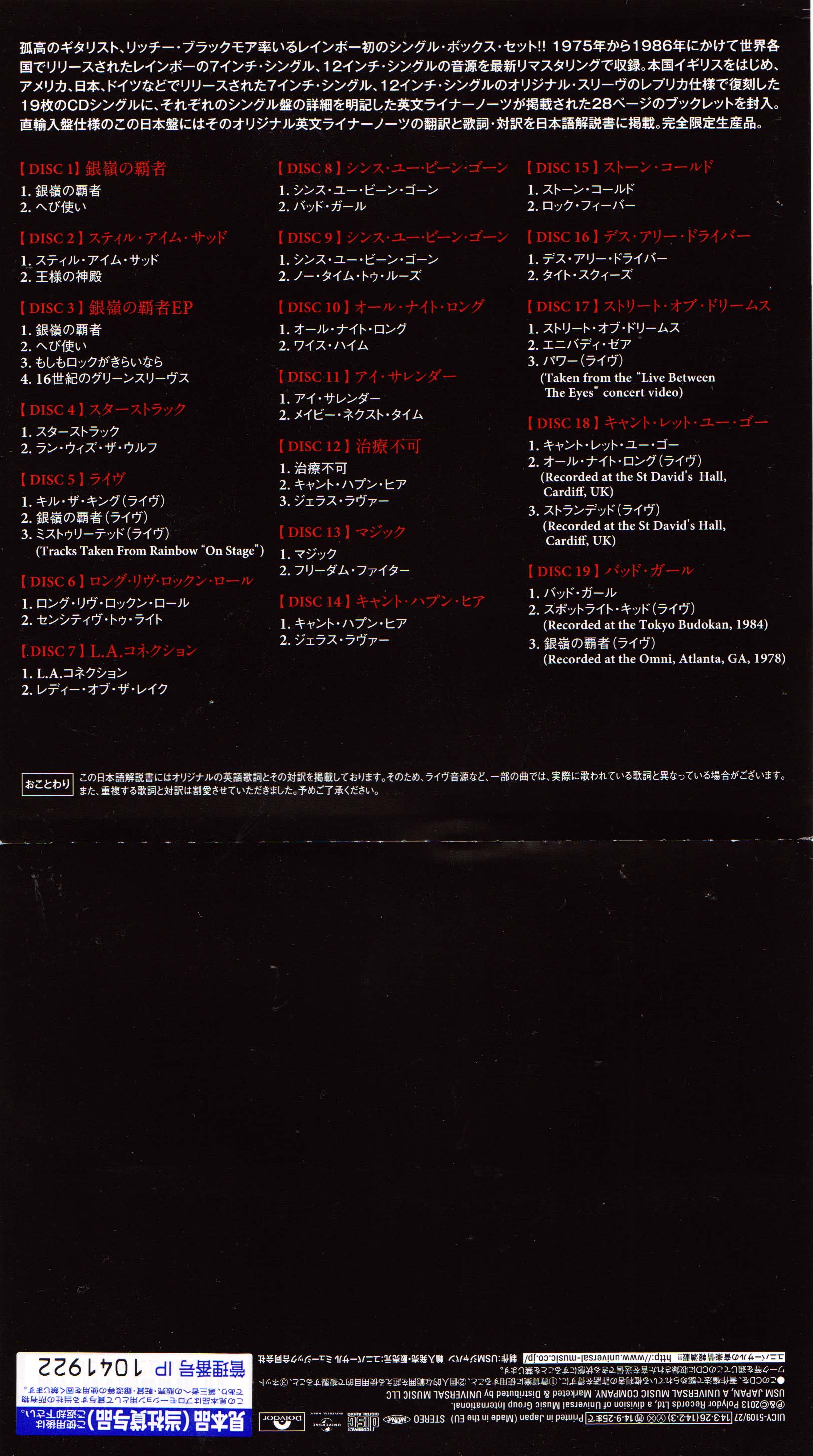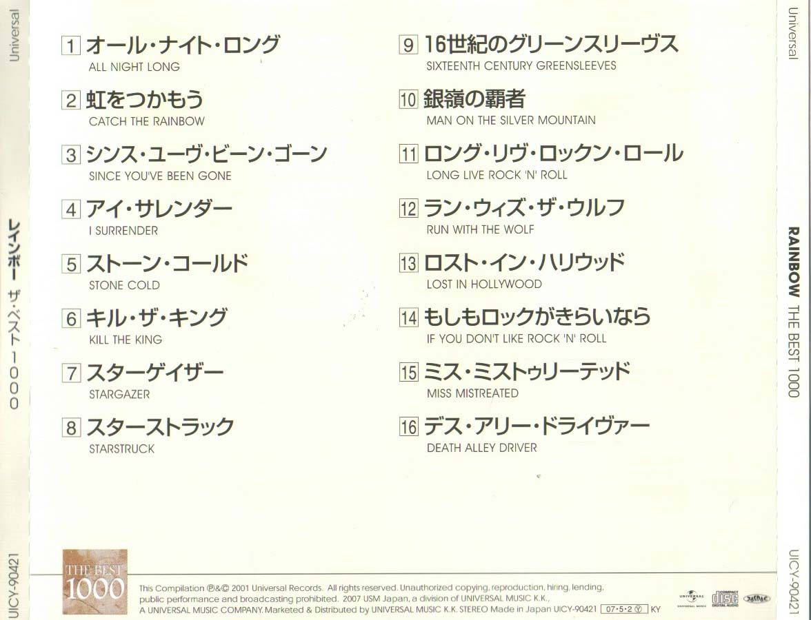 - Universal/Polydor UICY-1508, Japan, June 21st, 2001