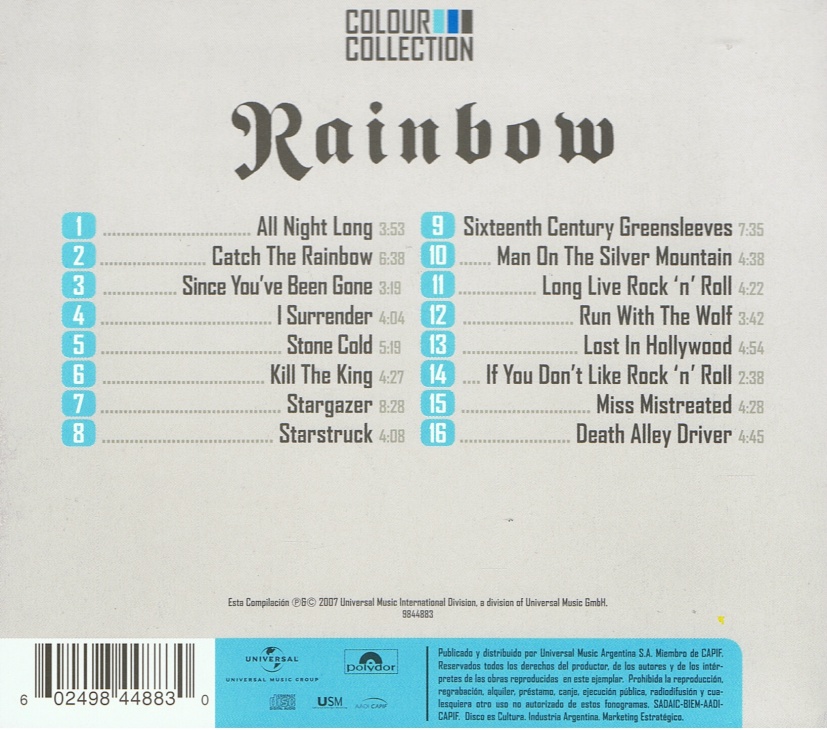 - Titled on the sleeve as "Best Of Collection - The Very Best Of Rainbow"