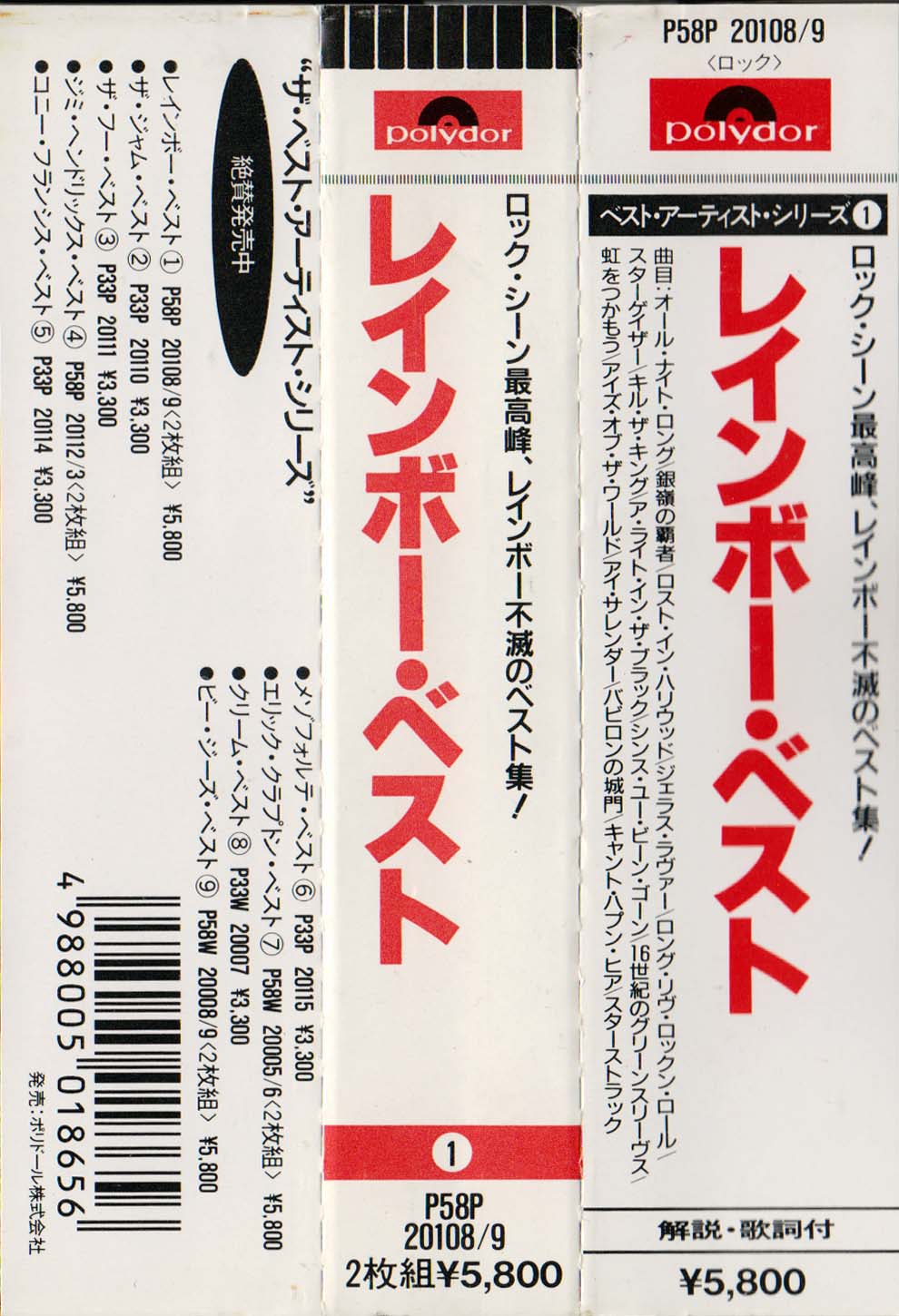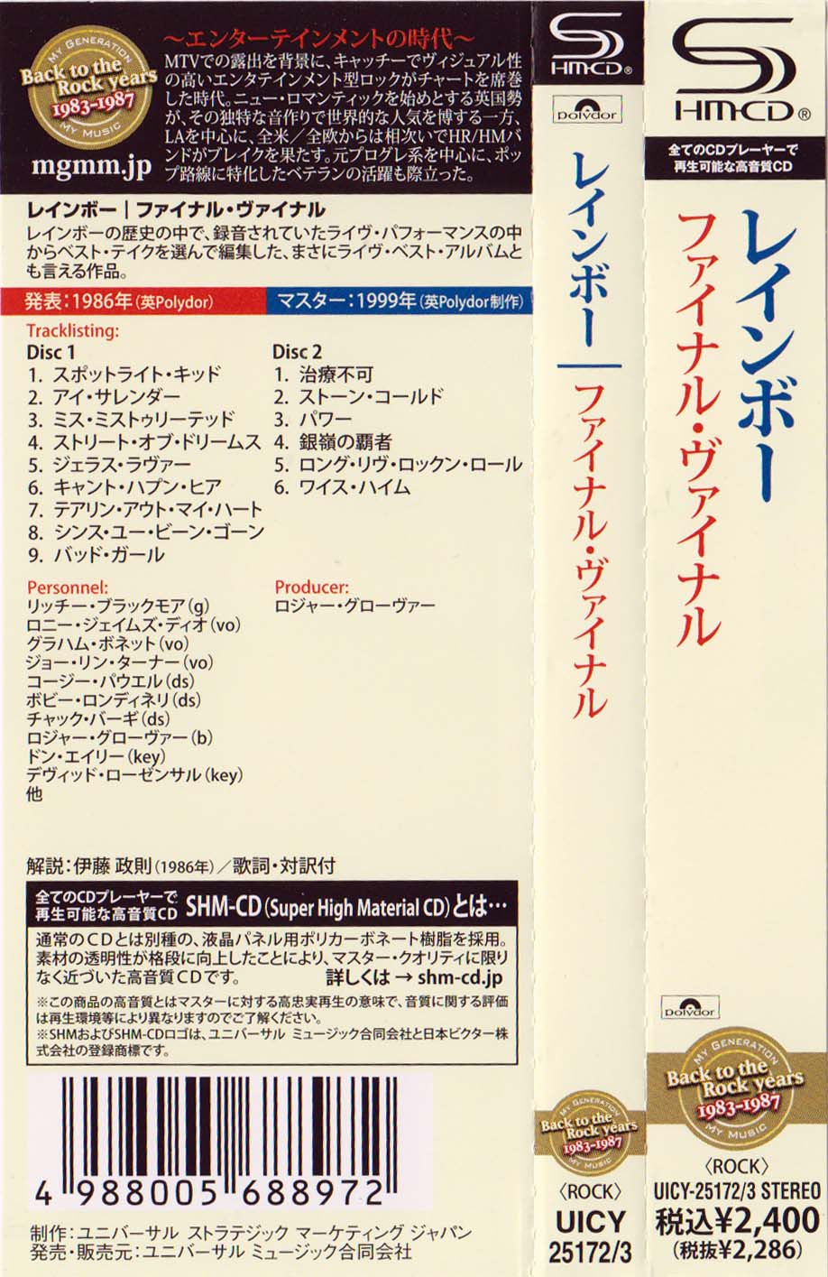 - Polydor P58P-20108/9, Japan, June 1, 1987