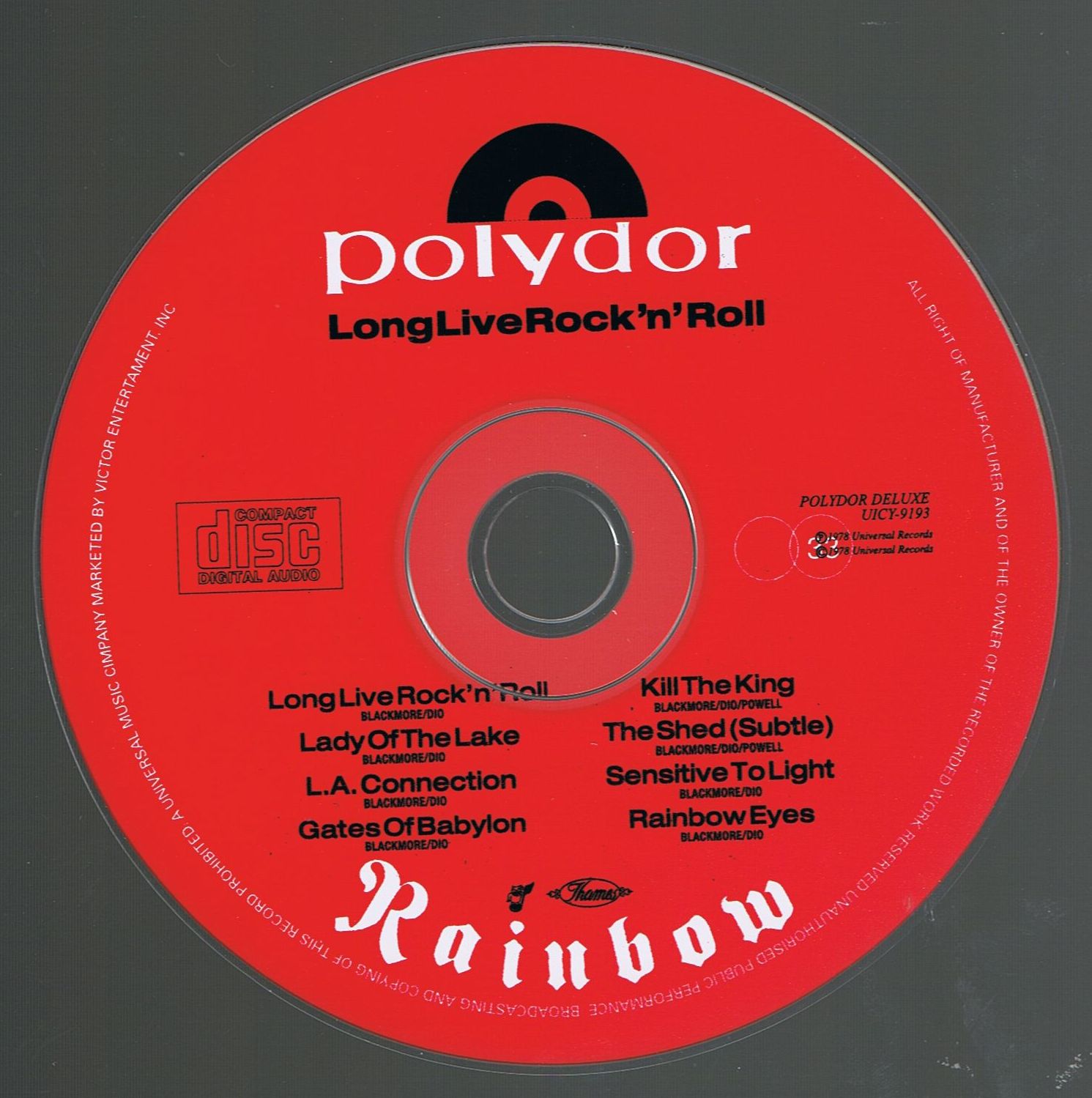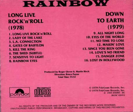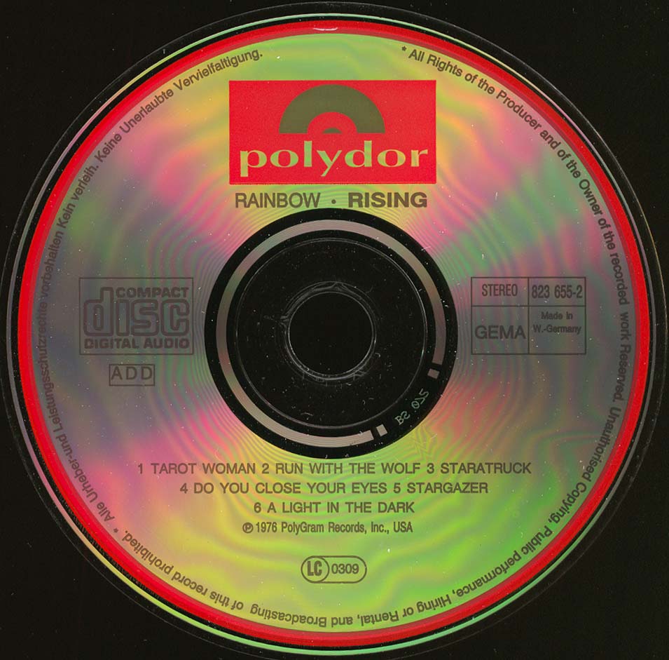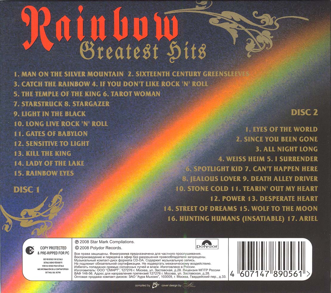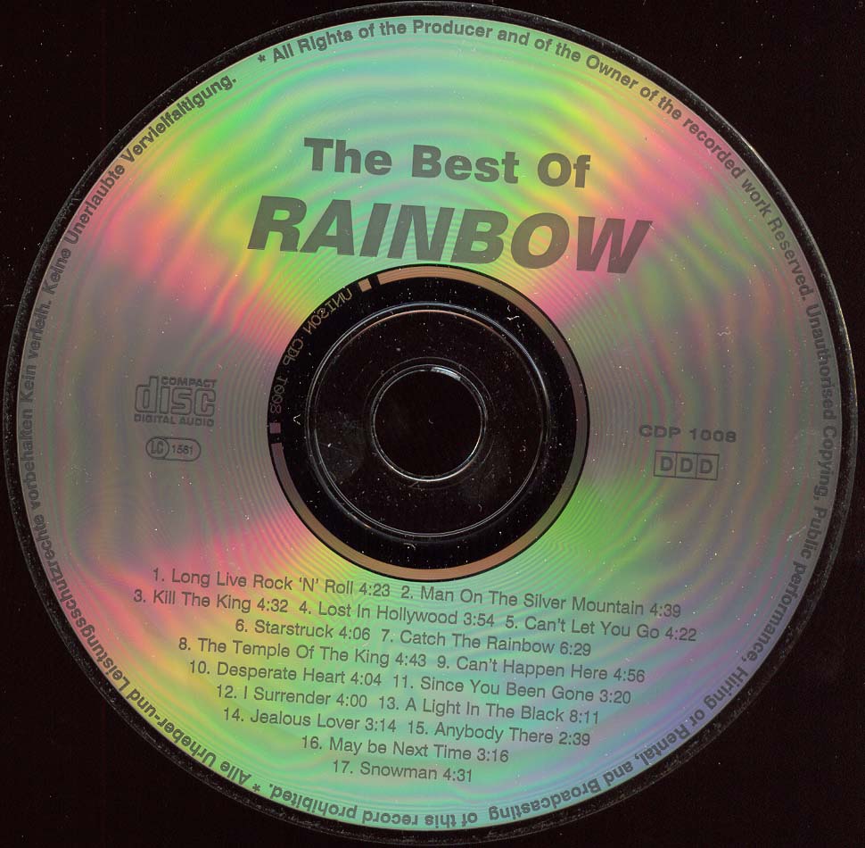 These are illegal, unauthorized copies of Rainbow CDs.