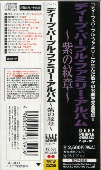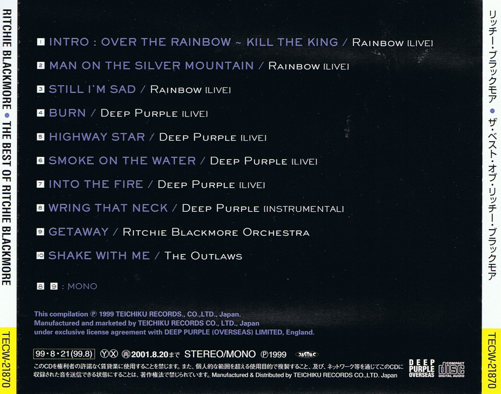 - Teichiku Records TECX-18676, Japan, March 21st, 1998