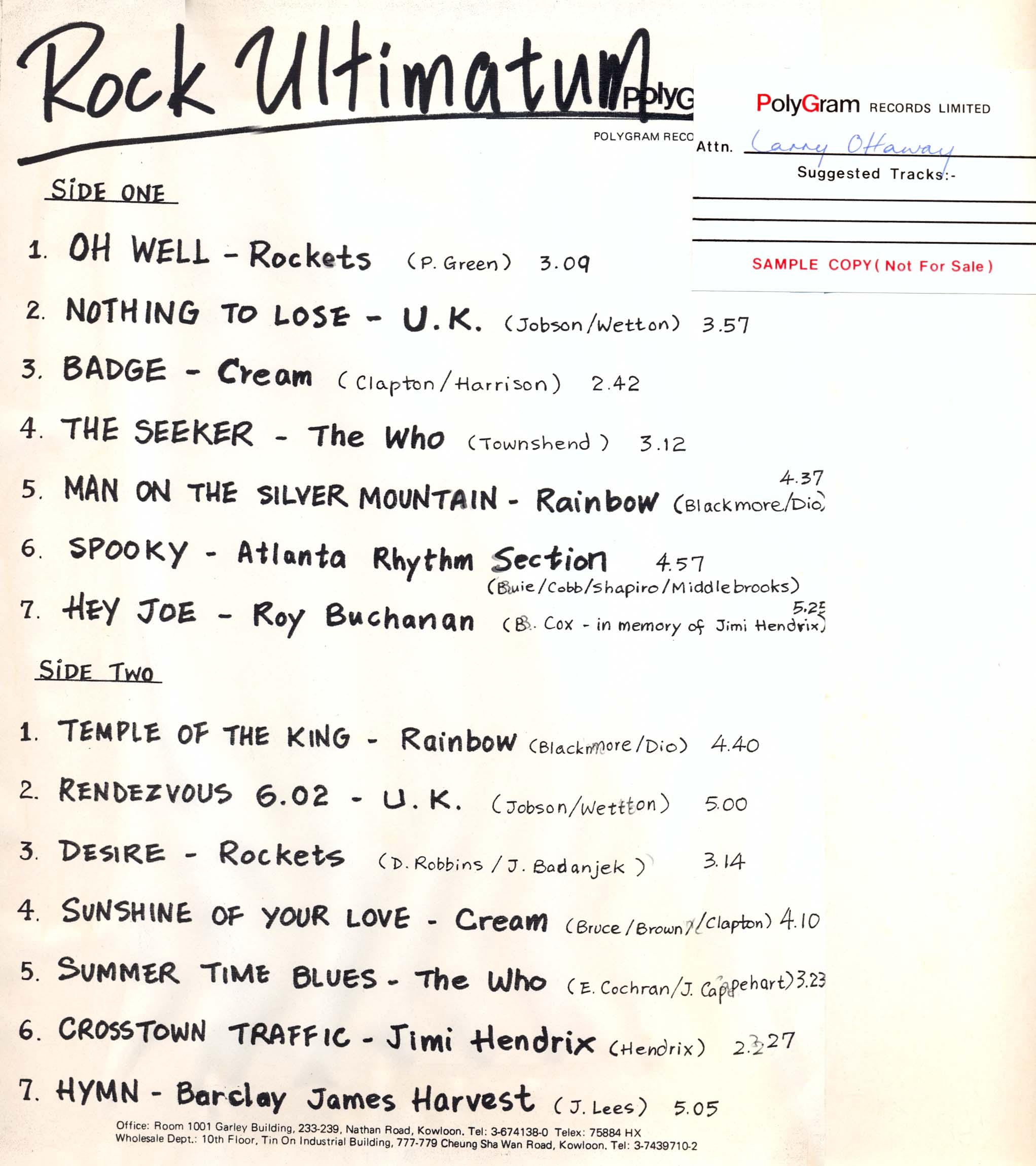 - (*) includes Ronnie James Dio on vocals