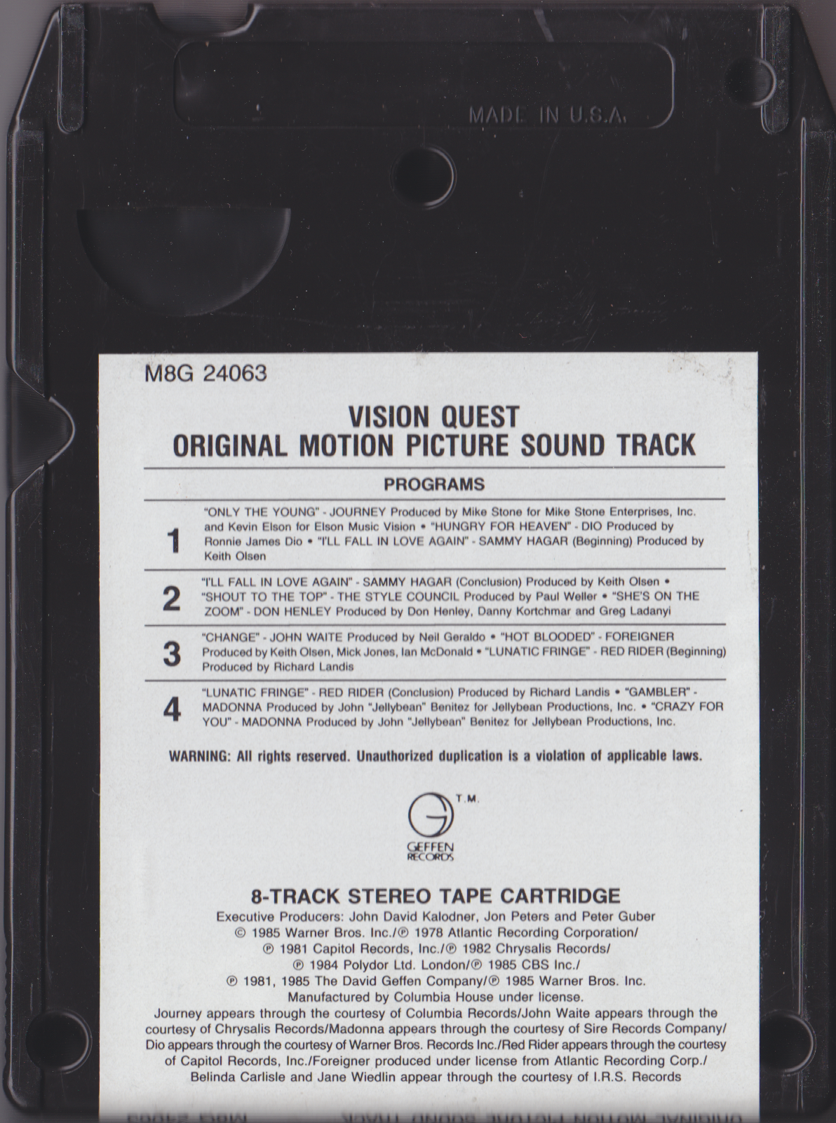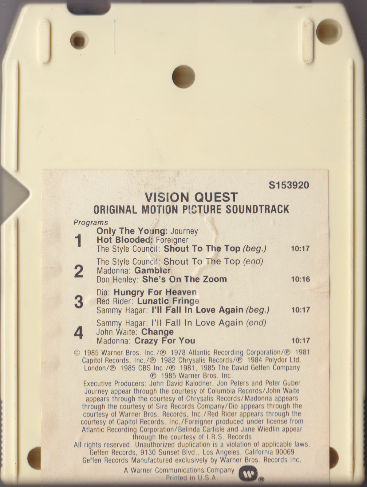 Journey: Only The Young Dio: Hungry For Heaven Sammy Hagar: I'll Fall In Love Again The Style Council: Shout To The Top Don Henley: She's On The Zoom John Waite: Change Foreigner: Hot Blooded Red Rider: Lunatic Fringe Madonna: Gambler Madonna: Crazy For You