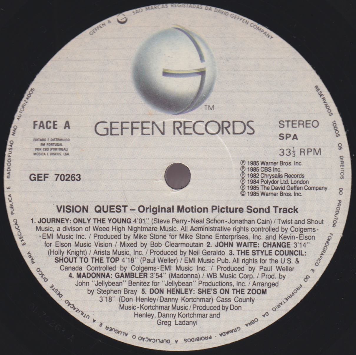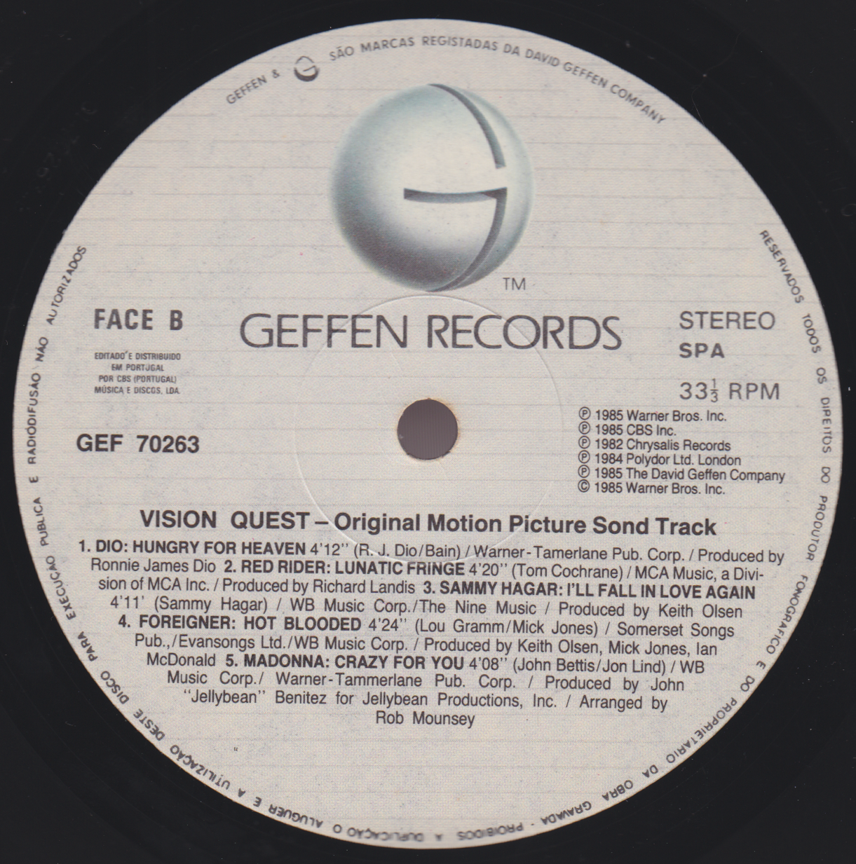 - Geffen GHS 70263, Portugal, 1985
