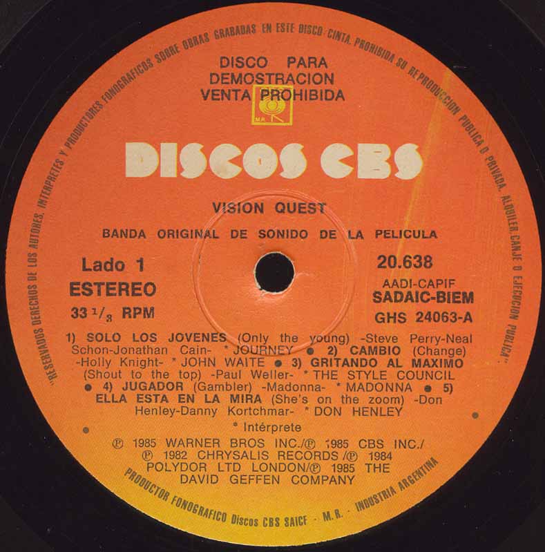 Vision Quest Original Sound Track