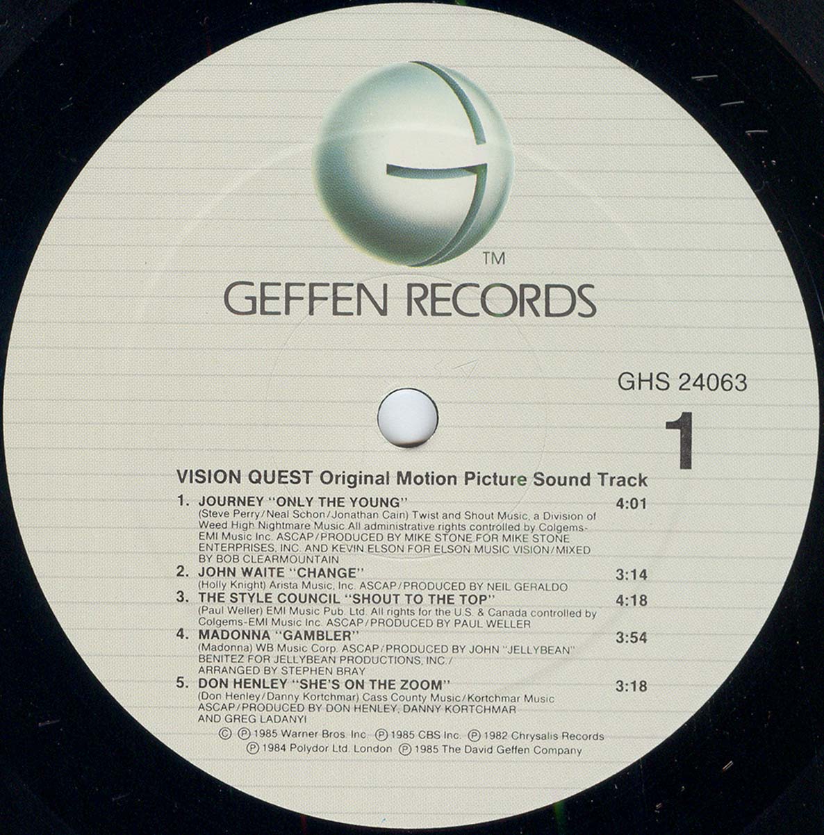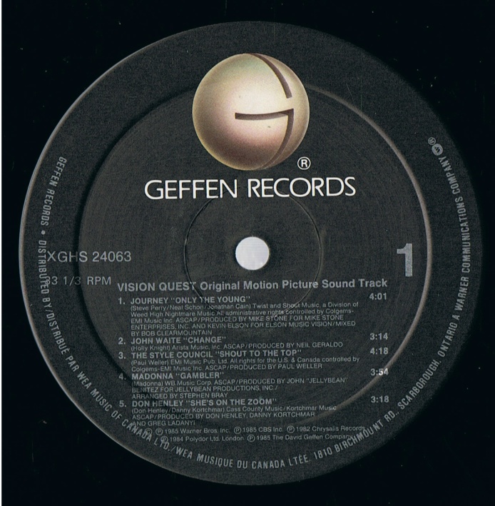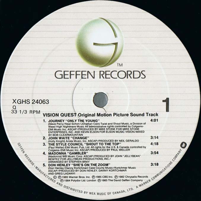 - Geffen XGHS 24063, Canada, 1985