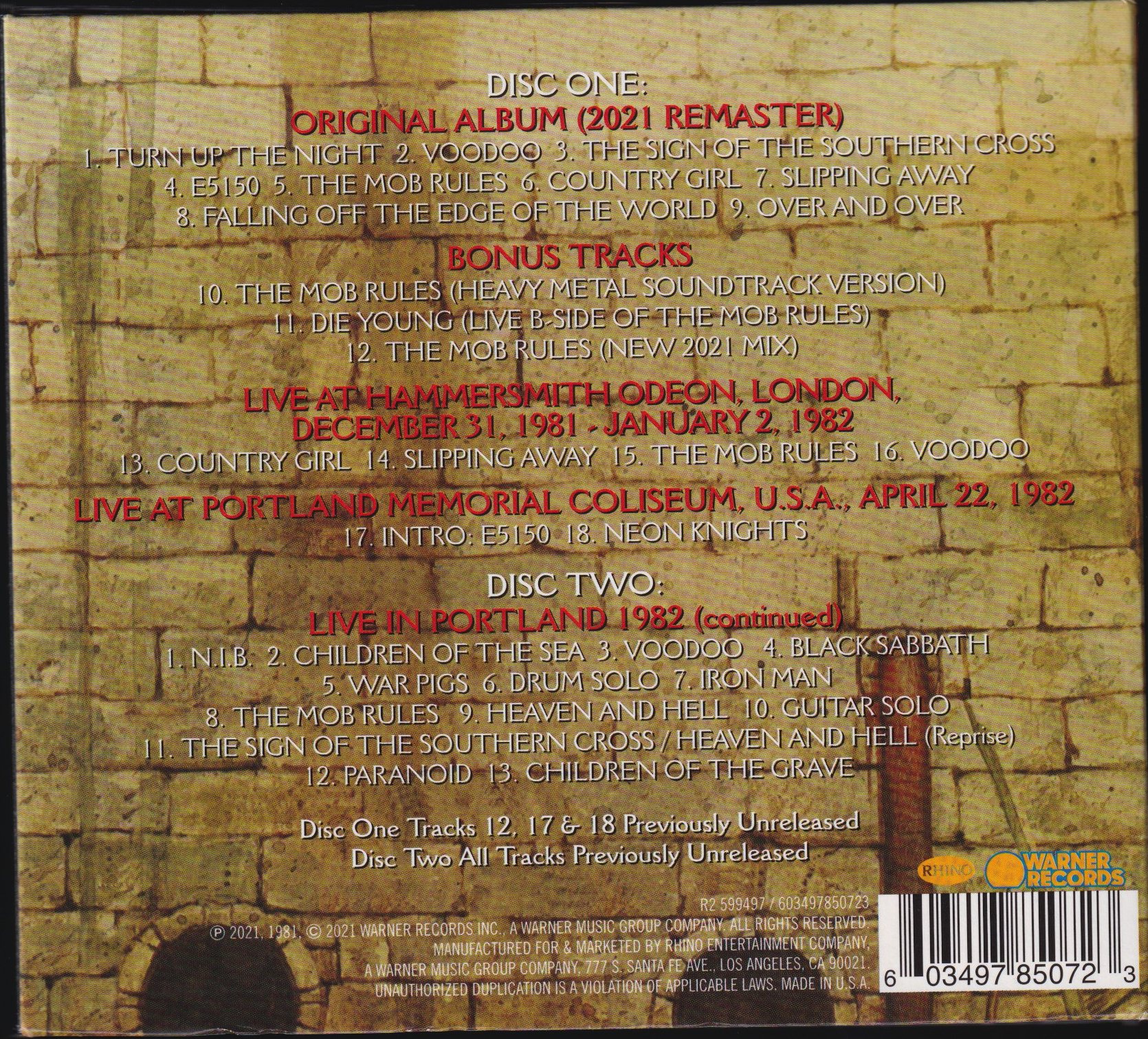 - Titled as "Mob Rules - Deluxe Edition"