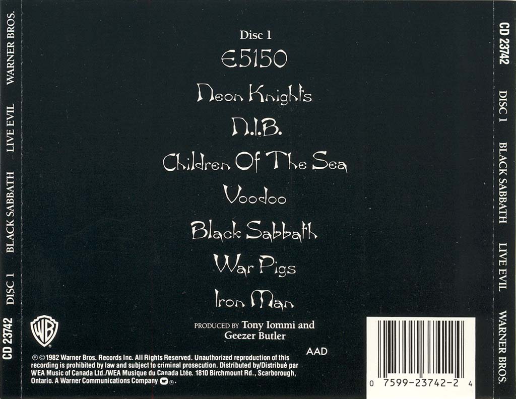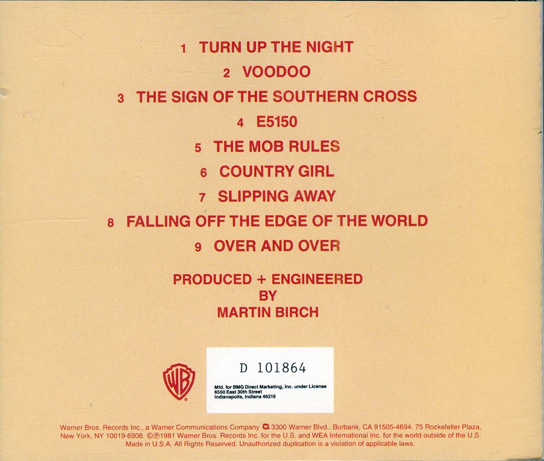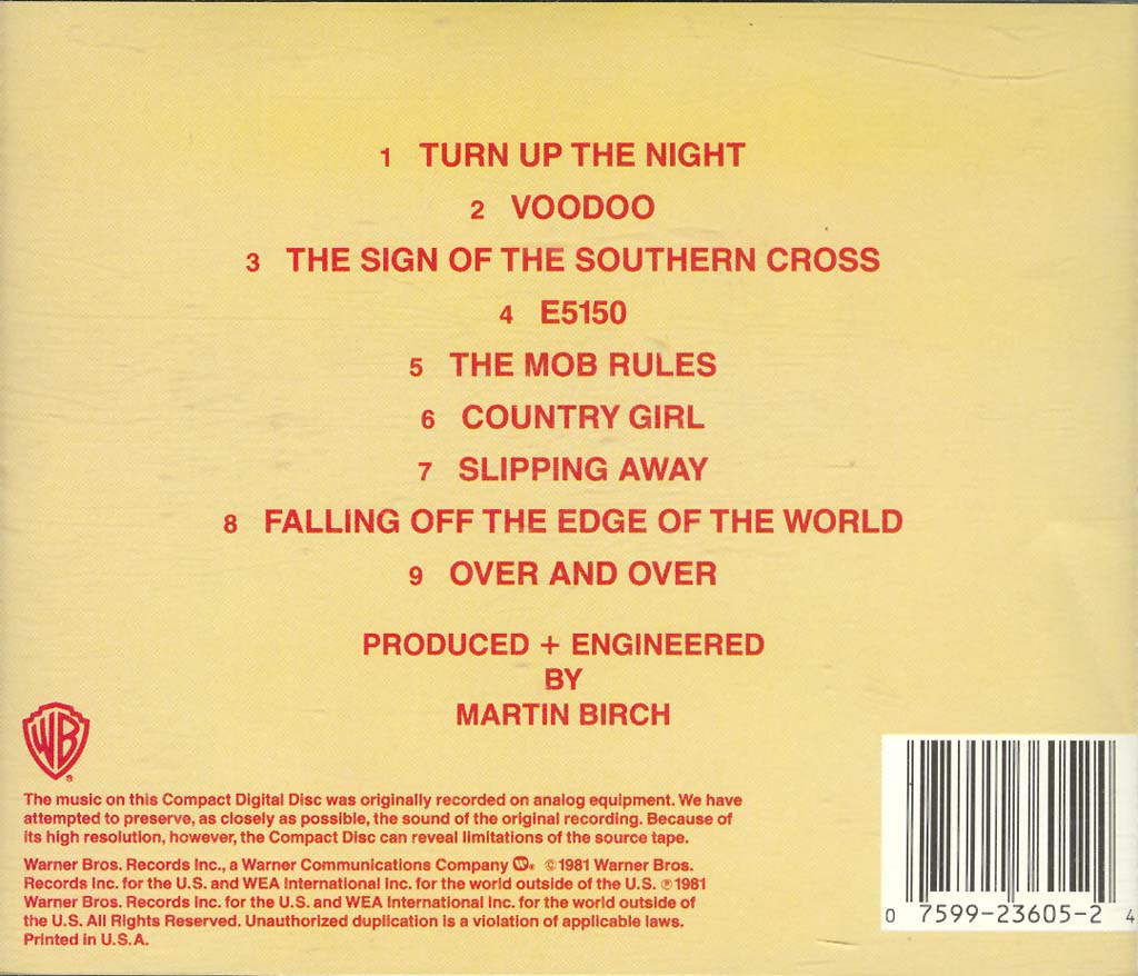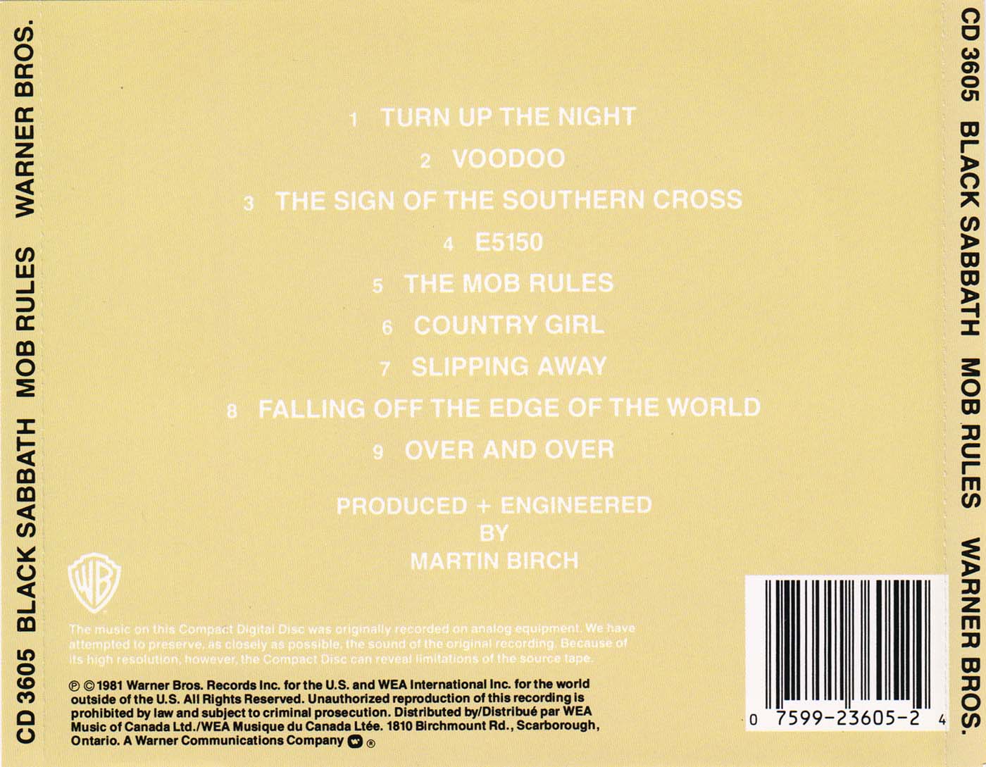 - Warner Bros CD 3605, Canada, July 7th, 1987