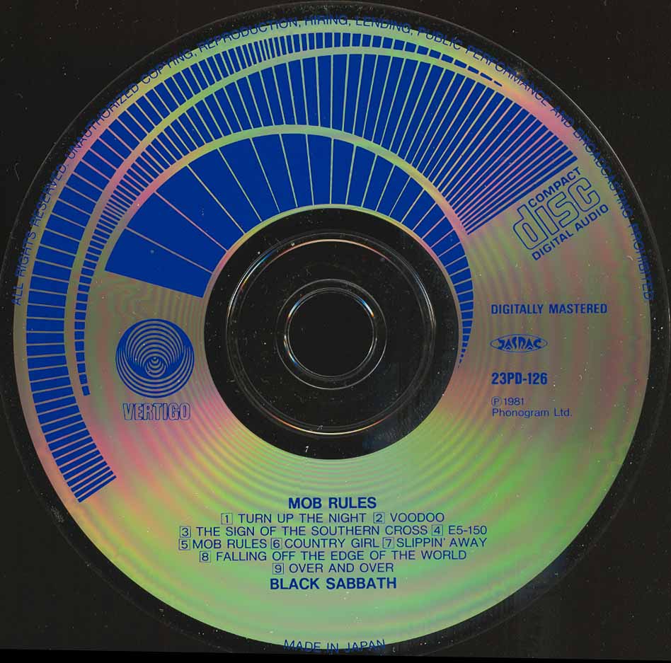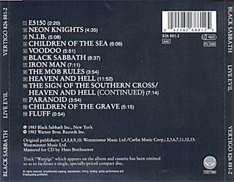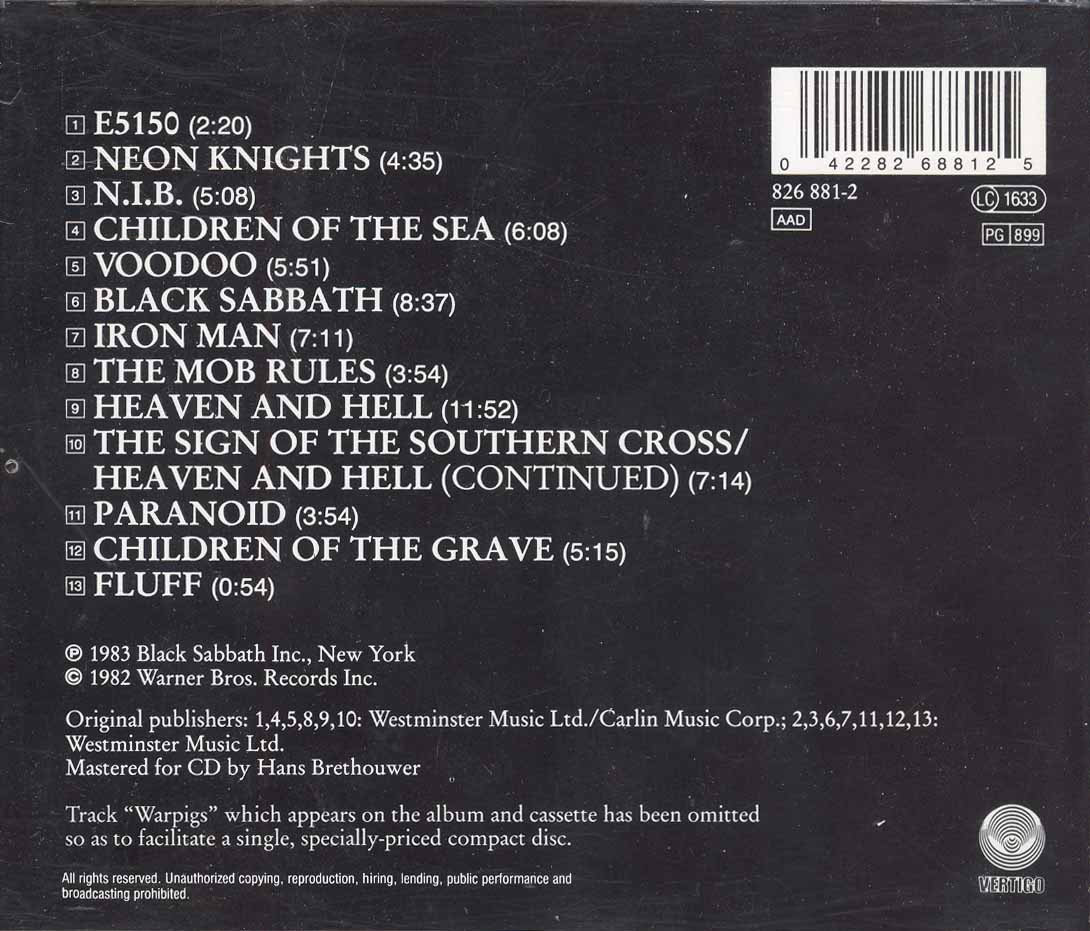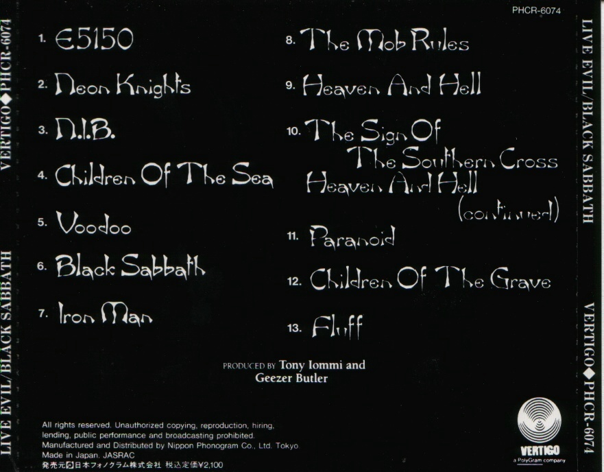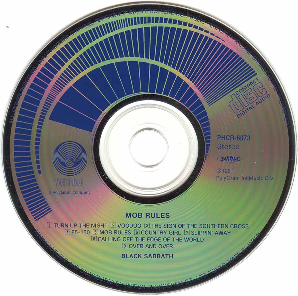 (+) = Live version from unknown location, taken from Mob Rules 12" single B side