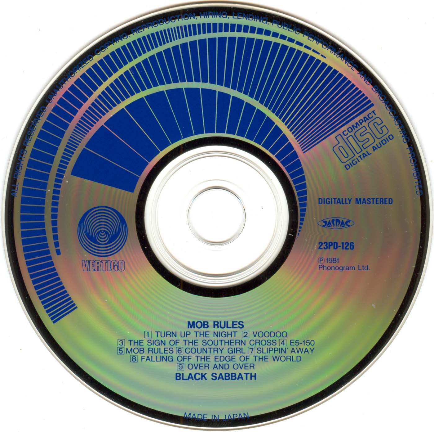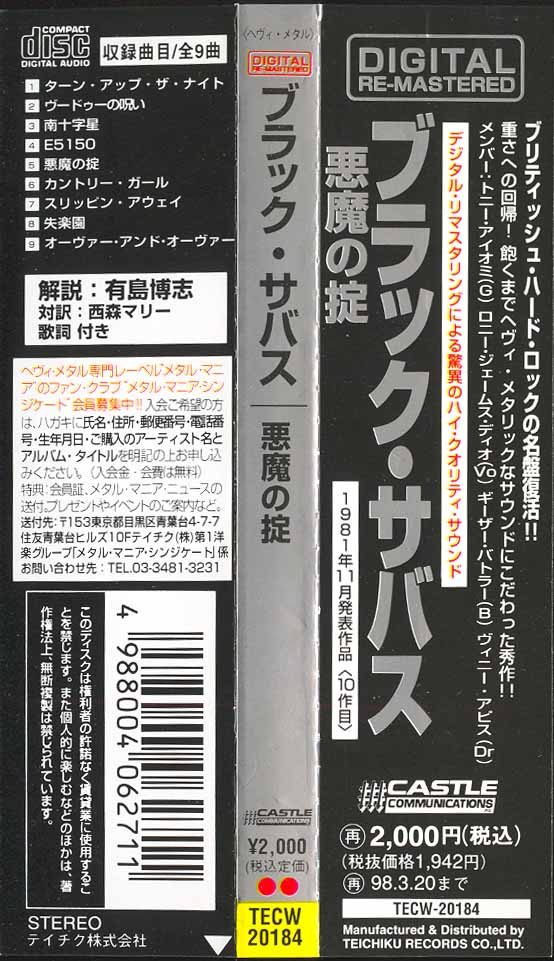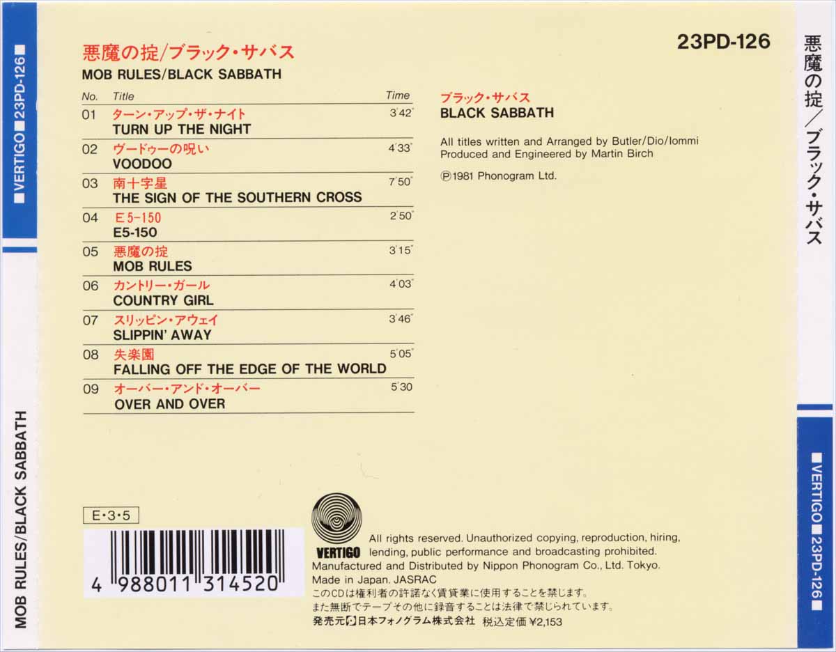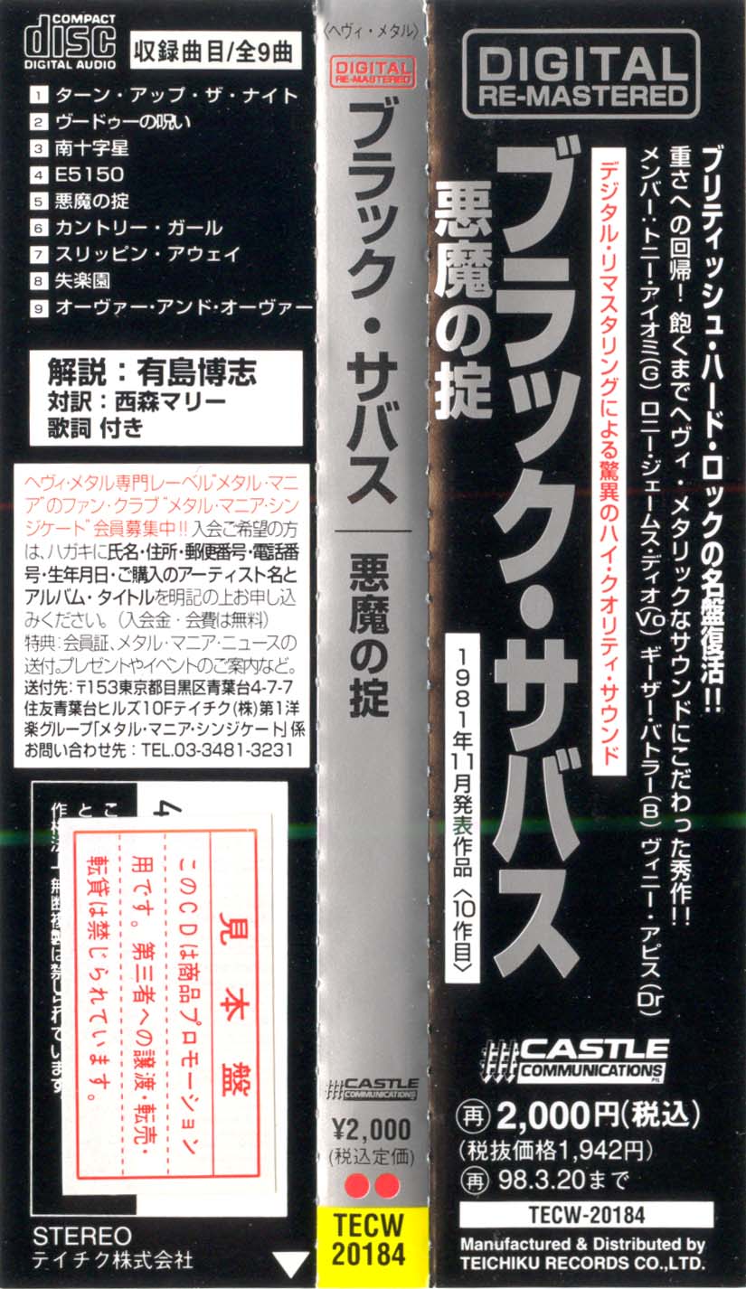 (+) = Live version from unknown location, taken from Mob Rules 12" single B side