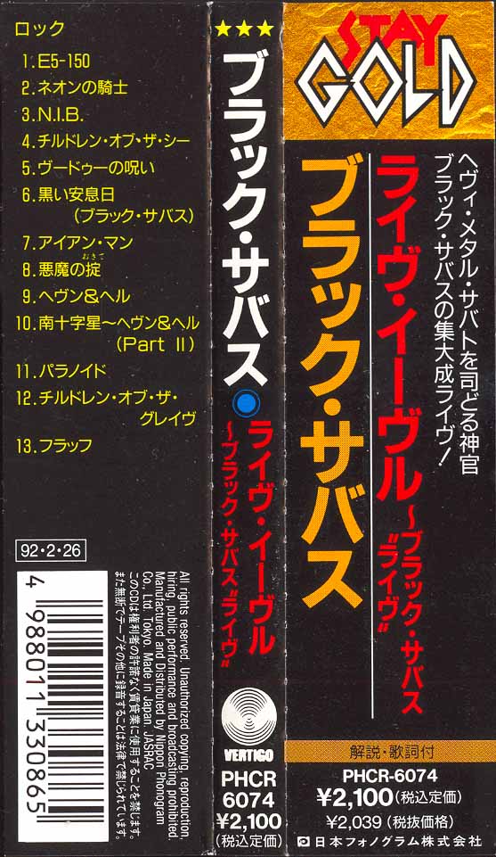 - Vertigo PHCR-6073, Japan, February 26th, 1992