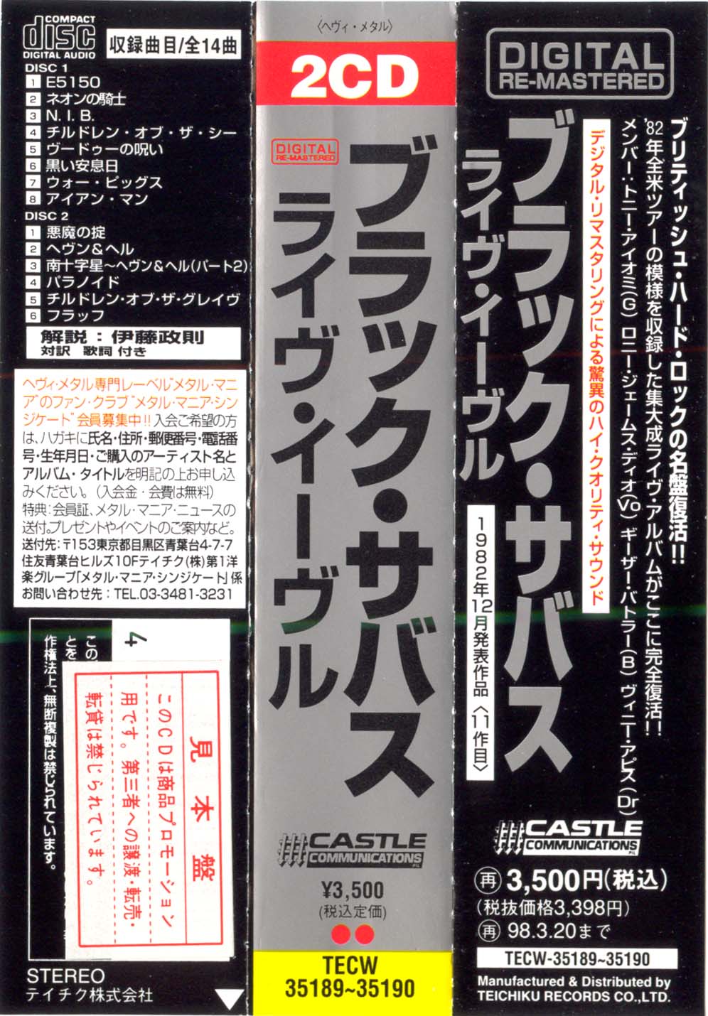 - Teichiku Records TECW-35189/90, Japan, March 21st, 1996