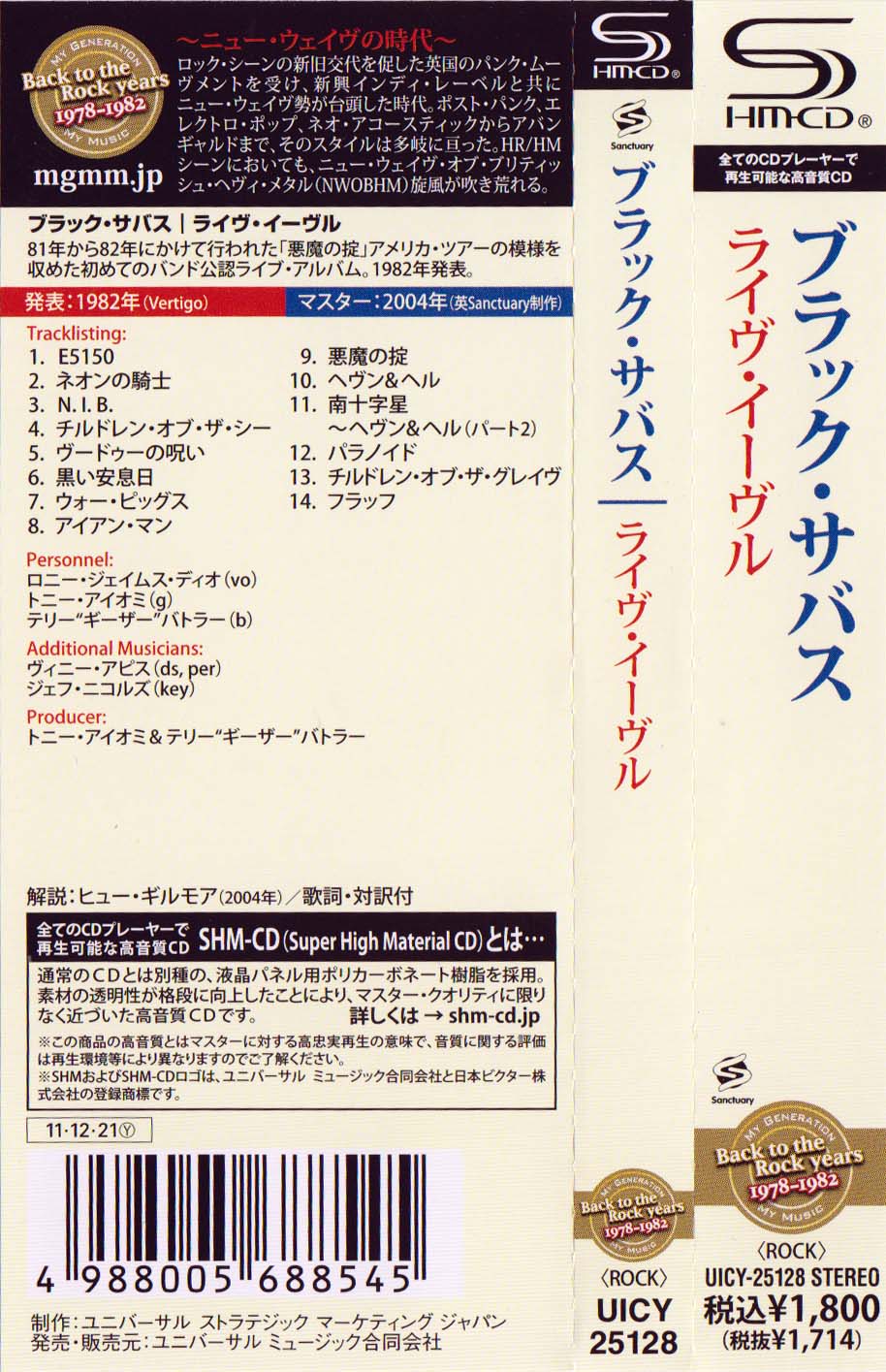 - Universal Music/Sanctuary UICY-25128, Japan, December 21st 2011
