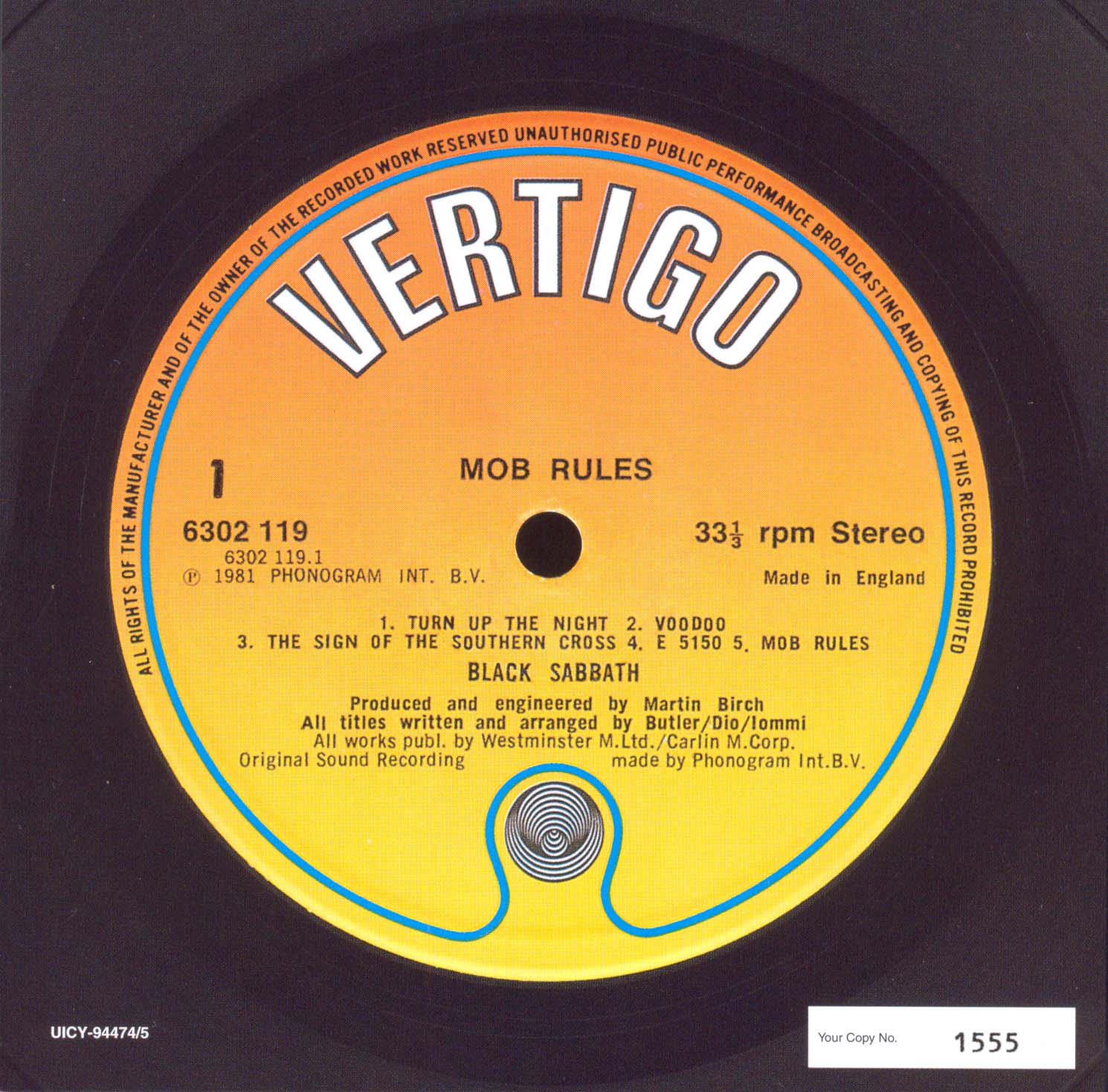 Vertigo 830 777-2, Germany, 1981