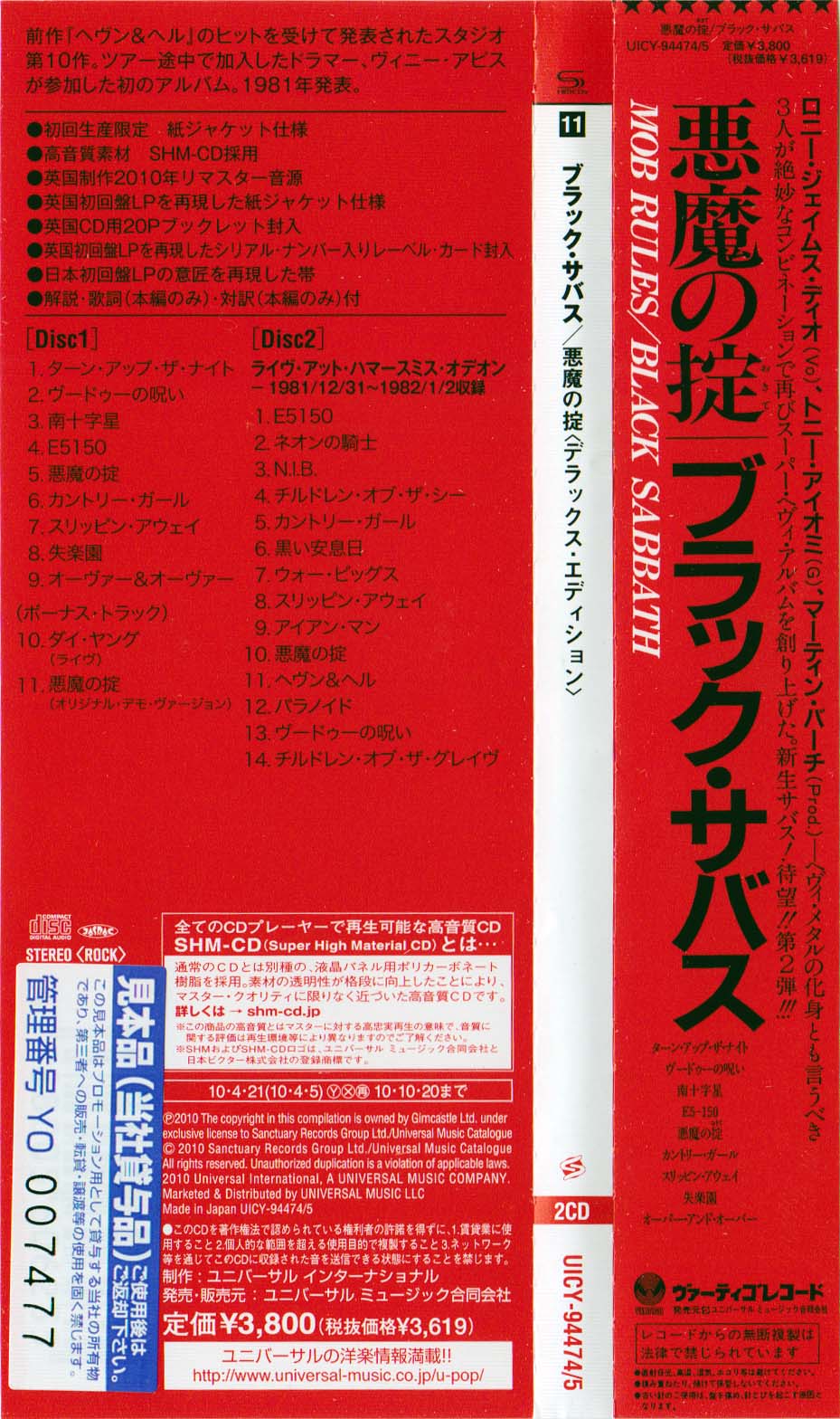 - Universal Music/Sanctuary Music UICY-94476/7, Japan, April 20th, 2010