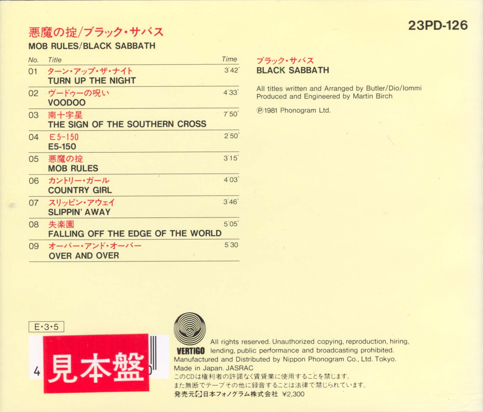 - Vertigo 23PD-126, Japan, March 5th, 1989