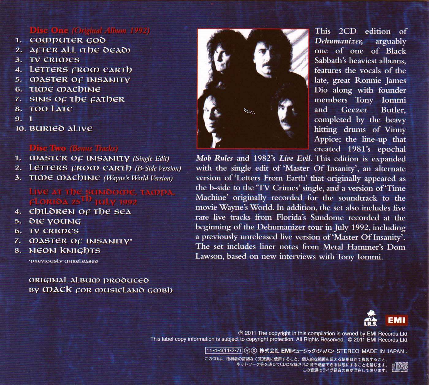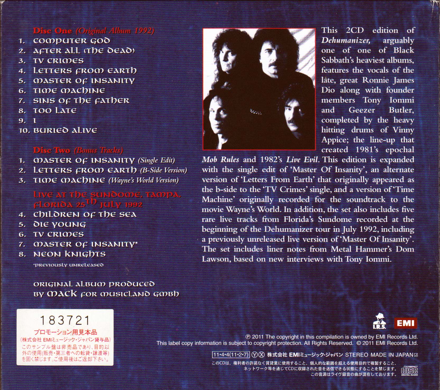 - EMI Records/I.R.S. TOCP-70990/1, Japan, April 4, 2011