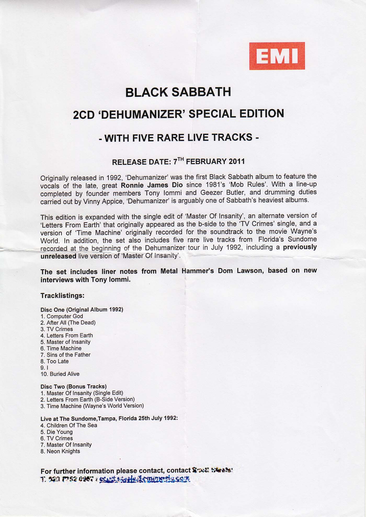 - EMI Records/I.R.S., UK, January 2011