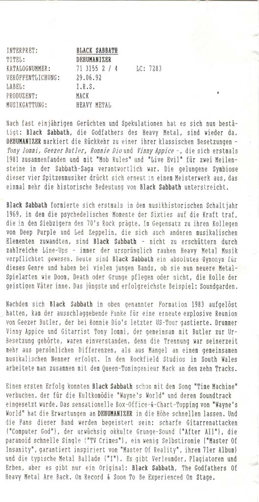 - Promo release for German markets, includes a Compact Info sheet in German