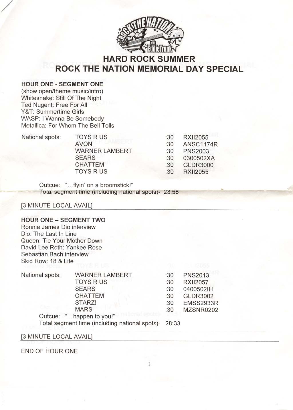 Dio, Queen, David Lee Roth, Motley Crue, Buckcherry,