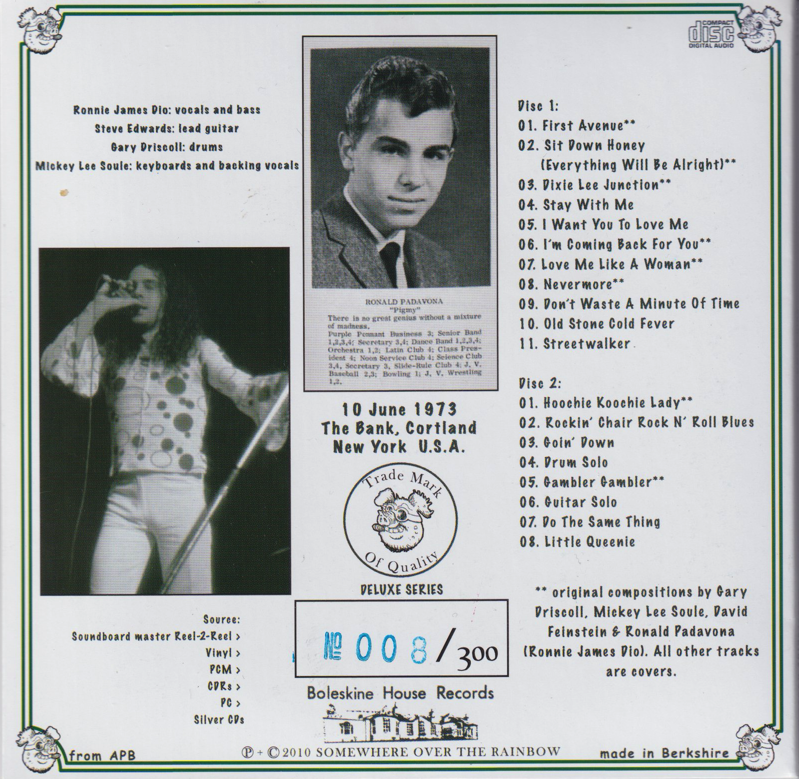 each. Counterfeit CDs are not listed here.